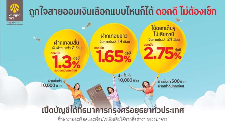 ผู้ที่สนใจสามารถดูรายละเอียดและเงื่อนไขเพิ่มเติมได้ที่ https://www.krungsri.com/th/promotions/personal/time-deposit