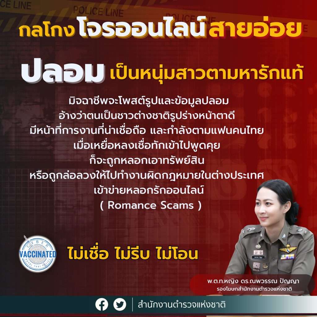 แฉกลโกง “โจรออนไลน์สายอ่อย” ย้ำประชาชนอย่าเป็น “แมงเม่าบินเข้ากองไฟ” เผยสถิติแจ้งความคดีออนไลน์ยังคงสูง เชิญชวนเสริมสร้างภูมิคุ้มกันผ่านแบบทดสอบ “ไซเบอร์วัคซีน”
