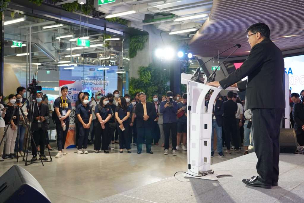 เวลาประมาณ 13.30 น. เป็นช่วง Grand Opening ซึ่งมี Speaker คนสำคัญที่ร่วมขับเคลื่อนทำให้เกิดงาน ATSA EXPO ในครั้งนี้ มากล่าวสุนทรพจน์สั้น ๆ แสดงวิสัยทัศน์สนับสนุนการทำงานของ ATSA โดยท่านแรก ได้แก่ รศ.ดร.พาสิทธิ์ หล่อธีรพงษ์ รองปลัดกระทรวง อว. ในฐานะผู้บริหารกระทรวงที่ดูแลระบบการศึกษาในระดับอุดมศึกษา ที่มีนโยบายในการนำสมองไหลกลับบ้าน (Reverse brain drain)