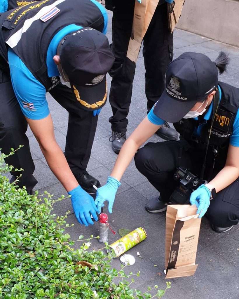 และประสานหน่วยเก็บกู้วัตถุระเบิด (อีโอดี) มาเก็บกู้วัตุระเบิดได้ทัน ส่วนจำเลยที่ 1 และ 2 เมื่อก่อเหตุแล้วพากันเดินไปยังห้องน้ำชั้น G ห้างสยามพารากอน แล้วเปลี่ยนเสื้อผ้าชุดใหม่ แล้วจึงขึ้นรถแท็กซี่ไปยังสถานีขนส่งหมอชิตใหม่เพื่อซื้อตั๋วรถทัวร์ไปยังอ.หาดใหญ่ จ.สงขลา เพื่อหลบหนี ซึ่งคำเบิกความของแม่ค้ารถเข็นขายไส้กรอก และพนักงานขายตั๋วรถทัวร์สามารถจดจำใบหน้าคนร้ายได้ ประกอบกับภาพจากกล้องวงจรปิดเป็นพยานหลักฐานสำคัญ ที่บันทึกภาพเคลื่อนไหวและใบหน้าจำเลยทั้งสองได้