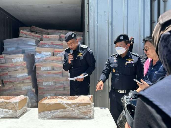 คณะพนักงานสอบสวนคดีพิเศษ ได้ทำการสอบสวนรวบรวมพยานหลักฐาน ปรากฏข้อเท็จจริงว่า สำนักงานศุลกากรท่าเรือแหลมฉบัง ได้ทำการสำรวจของค้างบัญชีเรืออยู่ในอารักขาของศุลกากรเกินกำหนดเวลา 30 วัน จึงได้ออกเอกสารบัญชีของค้างบัญชีเรือ (LIST A) โดยไม่มีใบขนสินค้าอันได้รับรองและไม่ได้เสียอากรหรือวางเงินประกันค่าอากรหรือวางเงินประกันค่าอากรที่พึงเรียกเก็บแก่ของนั้นและได้แจ้งไปยังตัวแทนเรือและผู้รับตราส่งตามที่ระบุไว้ในบัญชีเรือ เพื่อให้มีการชำระอากรหรือวางประกันค่าอากรภายในระยะเวลาที่กฎหมายกำหนด แต่เมื่อครบระยะเวลา ไม่ปรากฏว่ามีผู้ใดมาแสดงความเป็นเจ้าของ จึงทำการเปิดสำรวจ และพบสินค้าประเภทสุกรแช่แข็ง ซึ่งเป็นของควบคุมการนำเข้าตามพระราชบัญญัติโรคระบาดสัตว์ พ.ศ. 2558 โดยสินค้าดังกล่าวไม่ได้รับอนุญาต จากกรมปศุสัตว์ จึงเป็นการนำเข้าโดยฝ่าฝืนพระราชบัญญัติโรคระบาดสัตว์ พ.ศ. 2558 อันเป็นความผิดฐานหลีกเลี่ยงข้อจำกัดและเป็นของอันพึงต้องริบตามกฎหมายศุลกากร ผลการประเมินราคาสินค้าทั้งหมดมีมูลค่าราคารวมค่าภาษีอากร รวมเป็นเงิน 460,105,947.38 บาท โดยกรมสอบสวนคดีพิเศษ จะได้ดำเนินคดีกับกลุ่มบุคคลที่เกี่ยวข้อง เพื่อนำผู้กระทำความผิดมาลงโทษต่อไป