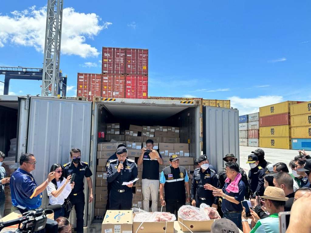 DSI สนธิกำลังร่วม กรมศุลกากร กรมปศุสัตว์ และหน่วยงานที่เกี่ยวข้องเข้าตรวจสอบตู้คอนเทนเนอร์ บรรจุสุกรแช่แข็ง จำนวน 161 ตู้ มูลค่ากว่า 460 ล้านบาท ณ สำนักงานศุลกากรท่าเรือแหลมฉบัง