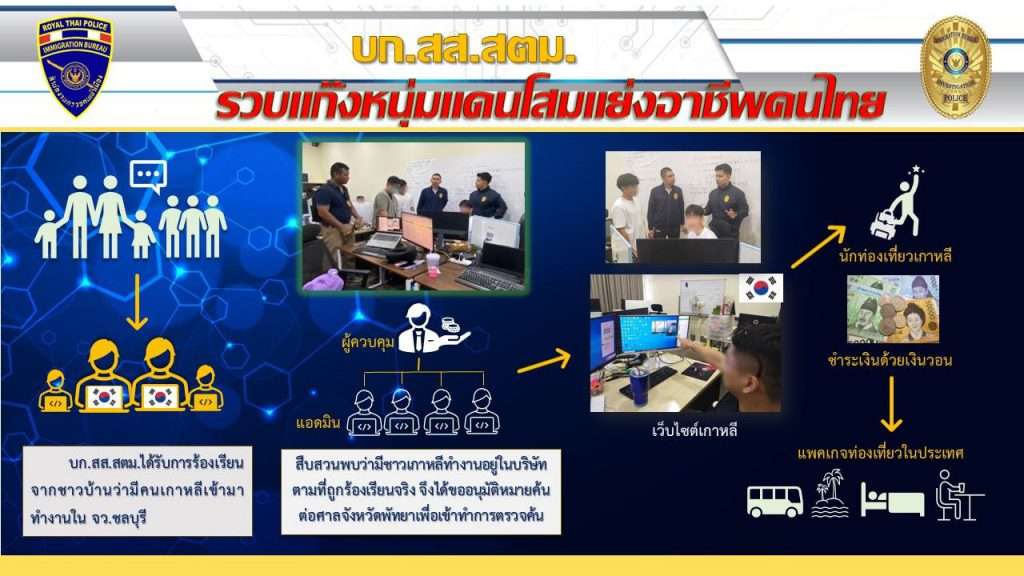 คดีที่ 3 บก.สส.สตม. รวบแก๊งหนุ่มแดนโสมแย่งอาชีพคนไทย บก.สส.สตม. จับชาวเกาหลี 5 ราย ส่งพนักงานสอบสวน สภ.เมืองพัทยา จว.ชลบุรี เพื่อดําเนินคดี ดังนี้