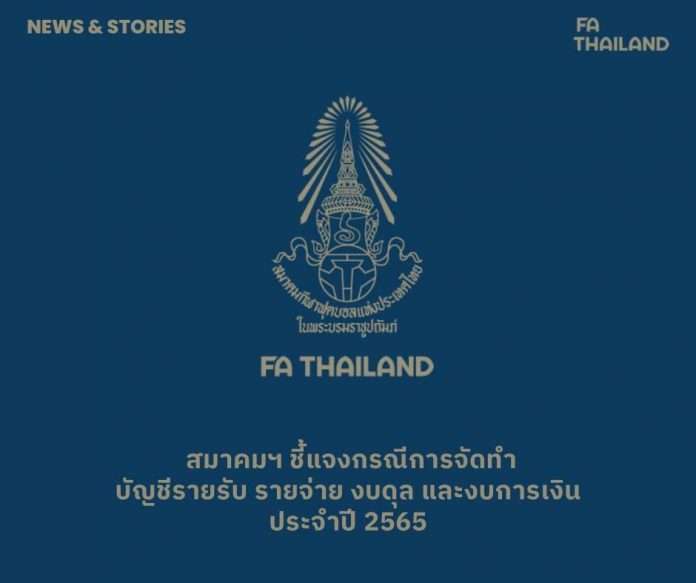 สมาคมฯ ขอชี้แจงว่า สมาคมฯ ปฏิบัติตาม พระราชบัญญัติการกีฬาแห่งประเทศไทย พ.ศ. 2558 มาตรา 78 และ ข้อบังคับลักษณะการปกครองของสมาคมกีฬาฟุตบอลแห่งประเทศไทย ในพระบรมราชูปถัมภ์ พ.ศ.2558 แก้ไขเพิ่มเติม (ครั้งที่ 6) พ.ศ.2565 หมวดที่ 8 เรื่อง การเงิน และทรัพย์สิน ข้อ 76 การตรวจสอบบัญชีรายรับ รายจ่าย งบดุล และงบการเงินของสมาคม ที่ระบุว่า “บัญชีรายรับ รายจ่าย งบดุล และงบการเงินของสมาคม จะต้องจัดทำทุกรอบสิบสองเดือนและได้รับการรับรองจากคณะกรรมการฝ่ายการเงิน ทั้งนี้ จะต้องให้ผู้สอบบัญชีรับอนุญาตเป็นผู้ตรวจสอบและรับรองเพื่อเสนอให้ที่ประชุมใหญ่อนุมัติภายในหนึ่งร้อยยี่สิบวันนับแต่วันที่สิ้นปีการบัญชีด้วย” ซึ่งข้อบังคับนี้จดทะเบียนกับ การกีฬาแห่งประเทศไทย ในฐานะนายทะเบียน เมื่อวันที่ 14 กันยายน 2565