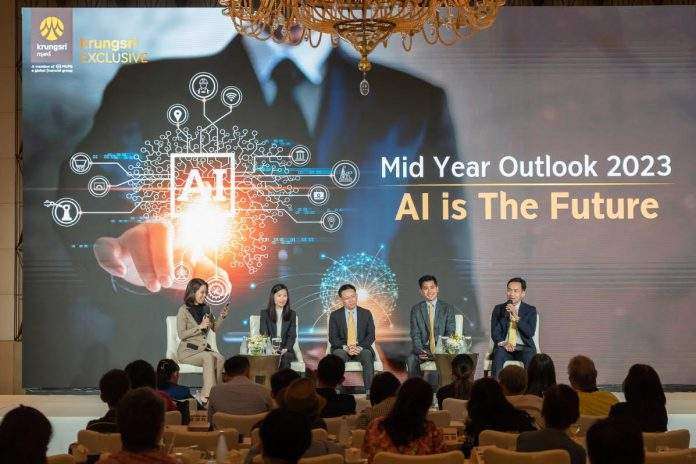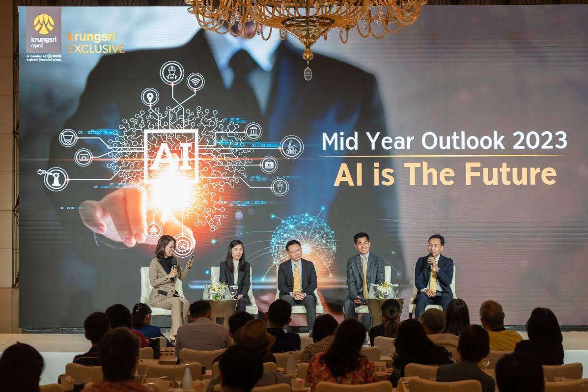 กรุงศรี เอ็กซ์คลูซีฟ อัปเดตมุมมองเศรษฐกิจและเทรนด์การลงทุนในช่วงครึ่งหลังของปี 2566 ในงานสัมมนา KRUNGSRI EXCLUSIVE Mid Year Outlook 2023: AI is the Future โดยชี้ว่าตลาดหุ้นโลกในช่วงครึ่งปีหลังยังคงผันผวนต่อเนื่อง อย่างไรก็ตามคาดว่าวัฏจักรดอกเบี้ยขาขึ้นใกล้จบลงในช่วงไตรมาส 3 และเศรษฐกิจจะฟื้นตัวดีขึ้นในช่วงไตรมาส 4 แนะนักลงทุนเตรียมคว้าโอกาสลงทุนในช่วง 3 เดือนข้างหน้า