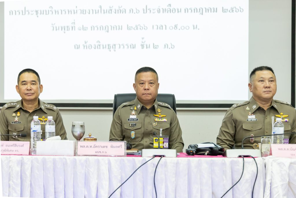พร้อมด้วยพล.ต.ท.พยูห์ ธนะศรีสืบวงศ์ ผู้ทรงคุณวุฒิพิเศษ ตร.,พล.ต.ต.บัณฑิต ตุงคะเศรณี รอง ผบช.ภ.6,พล.ต.ต.สุรชาติ จึงดำรงกิจ รอง ผบช.ภ.6,พล.ต.ต.ระวีพรรษ อมรมุนีพงศ์ รอง ผบช.ภ.6,พล.ต.ต.เสถียร บุญค้ำ รอง ผบช.ภ.6,พล.ต.ต.วรวัฒน์ มะลิ รอง ผบช.ภ.6,ผบก.- รอง ผบก.ในสังกัด ภ.6,ผู้แทนหน่วยงาน ตร.ในพื้นที่ ภ.6, หน.สภ.ในสังกัด ภ.6, ผกก.ฝอ.1-6 บก.อก.ภ.6 หรือผู้แทน และเจ้าหน้าที่ที่เกี่ยวข้องร่วมประชุมฯ