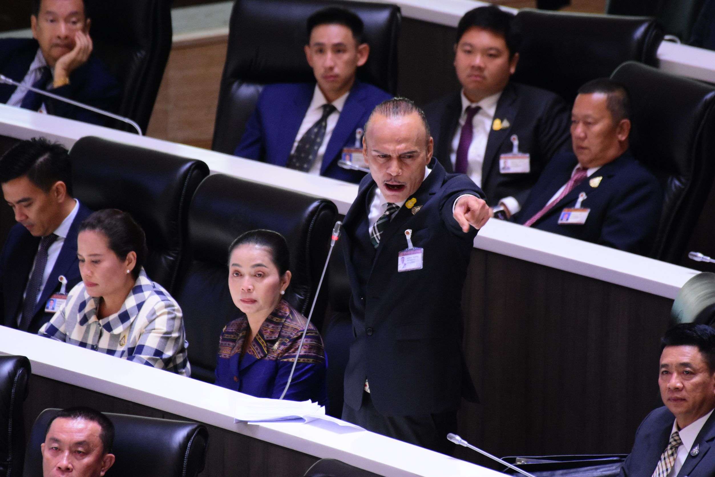 นายชาดา อภิปรายอีกว่า นายพิธา เคยเสนอร่างกฎหมายประมวลกฎหมายอาญา มาตรา 112 ยกเลิกความผิดฐานหมิ่นประมาท ดูหมิ่น หรือแสดงความอาฆาตมาดร้ายต่อพระมหากษัตริย์ พระราชินี รัชทายาทและผู้สำเร็จราชการ ไม่ให้เป็นความผิดที่เกี่ยวกับความมั่นคงแห่งราชอาณาจักรไทยอีกต่อไป กำหนดหมวดความผิดขึ้นมาใหม่ เป็นความผิดต่อองค์พระมหากษัตริย์และหมวดความผิดต่อพระราชินีและรัชทายาท ซึ่งตนไม่ทราบว่าพรรคก้าวไกล มองสถาบันพระมหากษัตริย์ มองพระราชินี องค์รัชทายาท อย่างไร เพราะสิ่งที่เสนอเมื่อครั้งที่แล้ว การหมิ่นประมาทพระมหากษัตริย์กำหนดโทษจำคุก 1 ปี เท่ากับความผิดของบุคคลทั่วไป แต่ที่น่าจะเป็นผลมากกว่านั้น การหมิ่นพระราชินี องค์รัชทายาท และผู้สำเร็จราชการ กำหนดโทษจำคุกไม่เกิน 6 เดือน น้อยกว่าความผิดที่หมิ่นประมาทบุคคลธรรมดา สร้างความเจ็บปวดให้กับคนที่เทิดทูนสถาบัน ที่สำคัญพรรคก้าวไกลย้ำว่าห้ามหน่วยงานราชการ ห้ามประชาชน หรือผู้อื่นฟ้อง ให้สำนักพระราชวังเป็นผู้ฟ้องเท่านั้น ซึ่งมันเป็นไปไม่ได้
