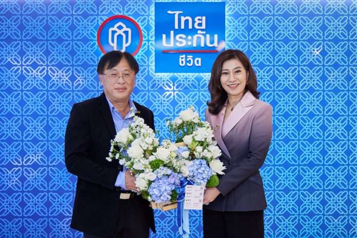 นางวรางค์ ไชยวรรณ กรรมการและรองประธานเจ้าหน้าที่บริหาร บริษัท ไทยประกันชีวิต จำกัด (มหาชน) หรือ TLI ให้การต้อนรับนายอำนวย จิรมหาโภคา ผู้ช่วยผู้จัดการ หัวหน้ากลุ่มงานผู้ออกหลักทรัพย์ 1 ตลาดหลักทรัพย์แห่งประเทศไทย ในโอกาสเข้าแสดงความยินดีที่หุ้น TLI เข้าเกณฑ์คำนวณดัชนี SET50 ณ อาคารไทยประกันชีวิต สำนักงานใหญ่