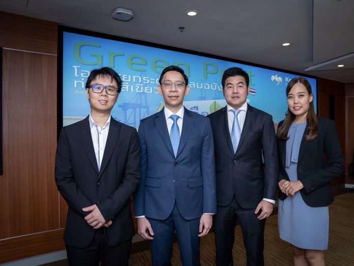 ดร.พชรพจน์ นันทรามาศ ผู้ช่วยกรรมการผู้จัดการใหญ่ และ Chief Economist ธนาคารกรุงไทย เปิดเผยว่า หลังจากการประชุมประจำปีขององค์การทางทะเลระหว่างประเทศ (International Maritime Organization: IMO) เมื่อเดือนกรกฎาคม 2566 ที่ผ่านมา ส่งผลให้ทั่วโลกตระหนักถึงการลดมลพิษจากการขนส่งสินค้าทางเรือมากขึ้น โดยประเทศต่างๆ ตกลงที่จะลดการปล่อยก๊าซคาร์บอนไดออกไซด์จากการขนส่งทางเรือลง 20% ภายในปี 2573 และ 100% ภายในปี 2593 ซึ่งหนึ่งในแนวทางการลดก๊าซเรือนกระจกจากการขนส่งสินค้าทางเรือ คือ แนวทางท่าเรือสีเขียว หรือกระบวนการจัดการทั้งหมดที่เกี่ยวข้องกับการขนส่งสินค้าทางเรือที่เป็นมิตรกับสิ่งแวดล้อม