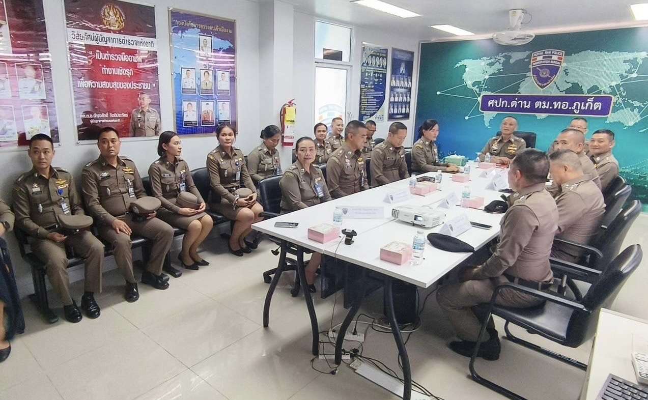โดยมี พ.ต.ท.อาภา เกื้อกูล รอง ผกก.ฯ รรท.ผกก.ด่าน ตม.ทอ.ภูเก็ต, พ.ต.ท.สภา จิตต์หลัง รอง ผกก.ด่าน ตม.ทอ. ภูเก็ต และข้าราชการตำรวจในสังกัดเข้าร่วมให้การต้อนรับ ณ ด่าน ตม.ทอ.ภูเก็ต