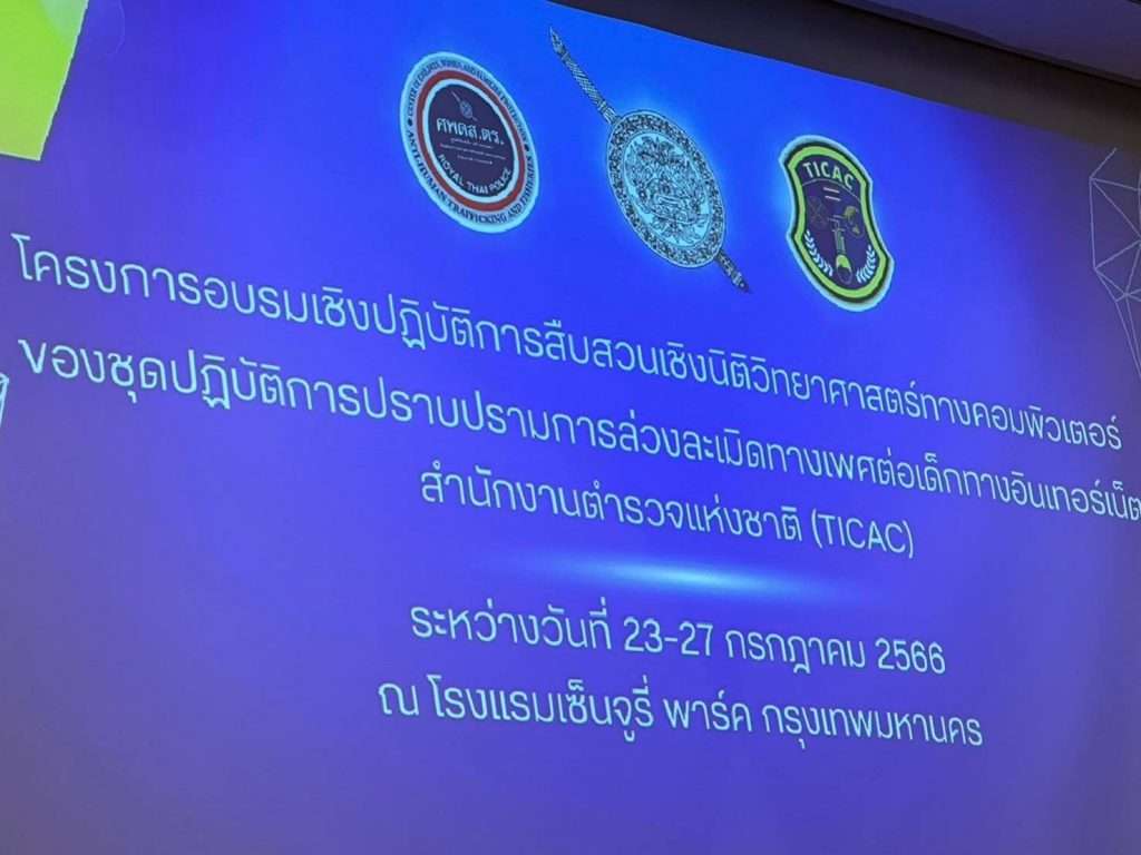 วันนี้ (24 ก.ค.66) เวลา 09.00 น. พล.ต.อ.สุรเชษฐ์ หักพาล รอง ผบ.ตร. ในฐานะผู้อำนวยการศูนย์พิทักษ์เด็ก สตรี ครอบครัว ป้องกันปราบปรามการค้ามนุษย์ และภาคประมง (ศพดส.ตร.) ได้เป็นประธานในการเปิดโครงการอบรมเชิงปฎิบัติการสืบสวนเชิงนิติวิทยาศาสตร์ทางคอมพิวเตอร์ของชุดปฎิบัติการปราบปรามการล่วงละเมิดทางเพศต่อเด็กทางอินเทอร์เน็ต สำนักงานตำรวจแห่งชาติ (TICAC) ณ โรงแรมเซ็นจูรี่ พาร์ค กรุงเทพฯ โดยมีกำหนดการอบรมระหว่างวันที่ 23 – 27 ก.ค.66 ซึ่งในครั้งนี้มีผู้เข้ารับการฝึกอบรมจากหน่วยงานที่เกี่ยวข้องตั้งแต่ระดับรองผู้บังคับการ จนถึงผู้บังคับหมู่ ในสังกัด สำนักงานตรวจคนเข้าเมือง, กองบังคับการปราบปรามการค้ามนุษย์, ชุดสืบสวน และชุดปฏิบัติการ ศพดส.ตร. บช.น./ภ.1-9 , ชุดสืบสวนดิจิทัล ศพดส.ตร.และ สำนักงานพิสูจน์หลักฐานตำรวจ รวมจำนวนกว่า 216 นาย