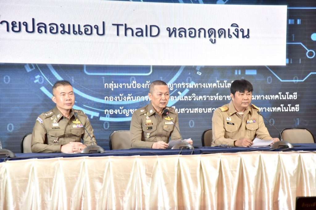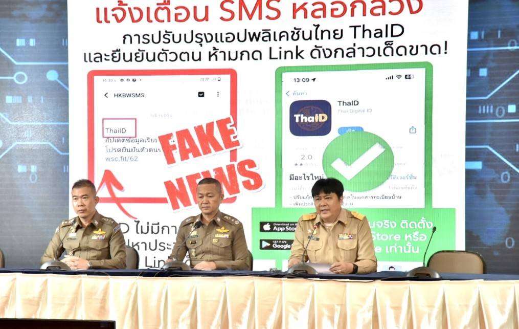 วันที่ 24 กรกฎาคม 2566 ที่สำนักงานตำรวจแห่งชาติ (ตร.) พล.ต.ท.ธัชชัย ปิตะนีละบุตร ผู้ช่วย ผบ.ตร. พร้อมคณะทำงาน และนายชลอ อินทพันธุ์ ผู้อำนวยการส่วนบูรณาการฐานข้อมูลกลางภาครัฐ สำนักบริหารการทะเบียน ผู้แทนกรมการปกครอง ร่วมกันแถลงเตือนภัยออนไลน์ หลังมีผู้เสียหายหลายรายร้องเรียนว่าได้รับข้อความสั้น (SMS) แอบอ้างแอปพลิเคชัน ThalD หลอกให้กดลิ้งก์ ควบคุมโทรศัพท์ เพื่อโอนเงินออกไป