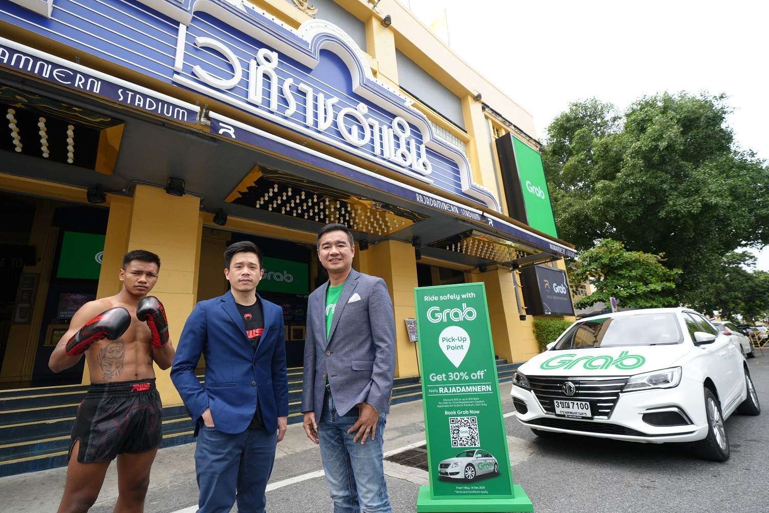 สำหรับการผนึกความร่วมมือกับสนามมวยเวทีราชดำเนินในครั้งนี้ถือเป็นอีกหนึ่งความตั้งใจที่จะช่วยส่งเสริมและกระตุ้นการท่องเที่ยวให้กับประเทศไทยโดยใช้ Soft Power อย่างมวยไทยมาเป็นจุดขายเพื่อดึงดูดนักท่องเที่ยวต่างชาติ โดยนอกจากการประชาสัมพันธ์ผ่านสื่อและกิจกรรมการตลาดในช่องทางต่างๆ แล้ว แกร็บยังมอบส่วนลดพิเศษ 30%* สำหรับผู้ใช้บริการ GrabCar Premium และ GrabSUV เมื่อเดินทางไปยังสนามมวยเวทีราชดำเนินเพียงใส่รหัส ‘RAJADAMNERN’ ตั้งแต่วันนี้ถึง 31 ธันวาคม 2566”