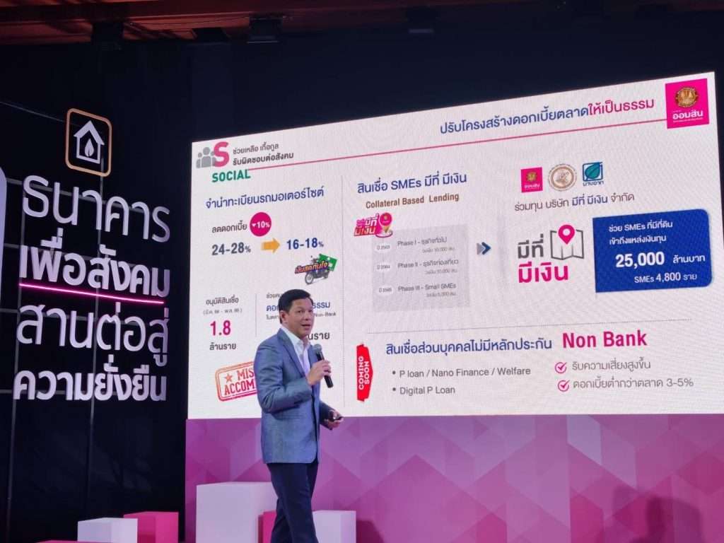 มิติที่ 2) การปรับโครงสร้างดอกเบี้ยตลาดให้เป็นธรรม ผ่านการเข้าทำธุรกิจสร้างการแข่งขันในตลาดสินเชื่อจำนำทะเบียน ซึ่งสามารถลดโครงสร้างอัตราดอกเบี้ยของธุรกิจนี้ลงมาอยู่ที่ 16-18% ในปัจจุบัน รวมถึงการปล่อยสินเชื่อ SMEs มีที่ มีเงิน ที่ให้ลูกค้าสามารถใช้ที่ดินเป็นหลักประกันการขอสินเชื่อได้ ซึ่งประสบความสำเร็จนำไปสู่การร่วมทุนจัดตั้งบริษัท มีที่ มีเงิน จำกัด ปล่อยสินเชื่อช่วยผู้ประกอบการ SMEs เข้าถึงแหล่งเงินทุนเป็นเม็ดเงินกว่า 25,000 ล้านบาท
