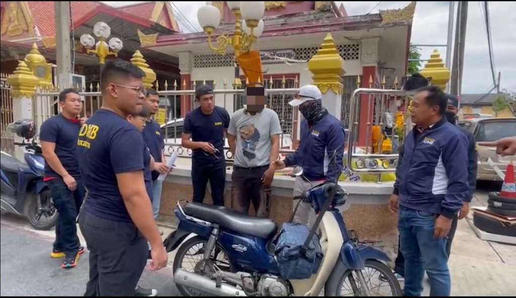 พ.ต.ท.ธีวร์ราธิป ชูดวง สว.กก.วิเคราะห์ข่าวฯ พร้อมกำลังชุดปฏิบัติการที่ 2 พร้อมนักสืบรุ่น 110 เข้าจับกุมตัว