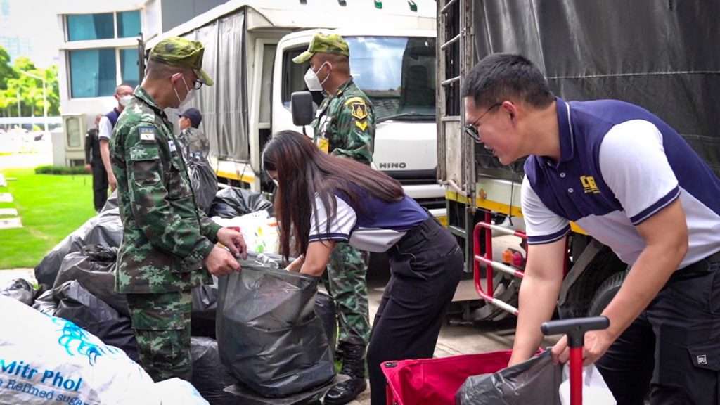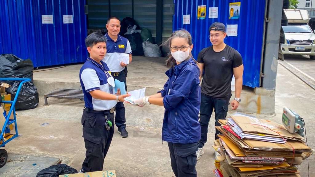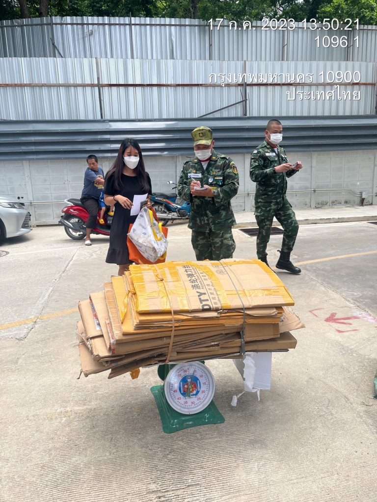 จากนั้นนำใส่ถุงแยกไว้ แล้วนำมาชั่งน้ำหนัก ที่บริเวณโรงขยะรีไซเคิล หลังอาคารพิทักษ์สันติ ภายในกองบัญชาการตำรวจสอบสวนกลาง เพื่อแลกเปลี่ยนเป็นเงินสด