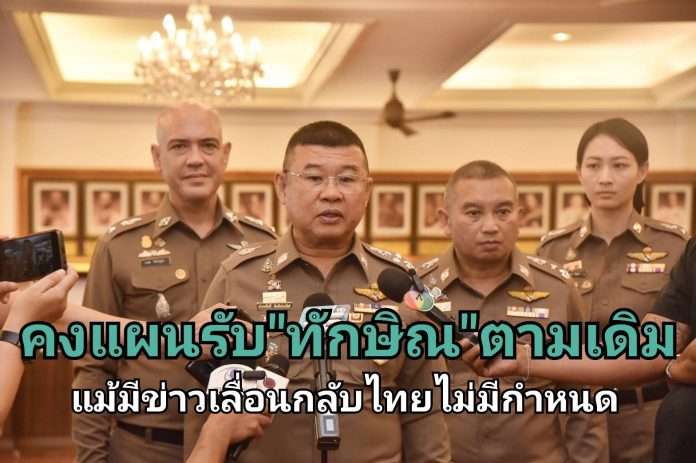 ผู้บัญชาการตำรวจแห่งชาติ กล่าวว่ากรณีมีกระแสข่าวว่า นายทักษิณ ชินวัตร อดีตนายกรัฐมนตรี เลื่อนเดินทางกลับประเทศไทยจากเดิมวันที่ 10 ส.ค.นี้ โดยย้ำว่าสำนักงานตำรวจแห่งชาติ เตรียมแผนรองรับไว้อยู่แล้ว ส่วนจะเลื่อนกลับหรือไม่ ตำรวจก็ดำเนินการตามแผนไว้อยู่โดยขณะนี้ยังไม่มีหน่วยงานหรือบุคคลใดประสานมาทางตำรวจ