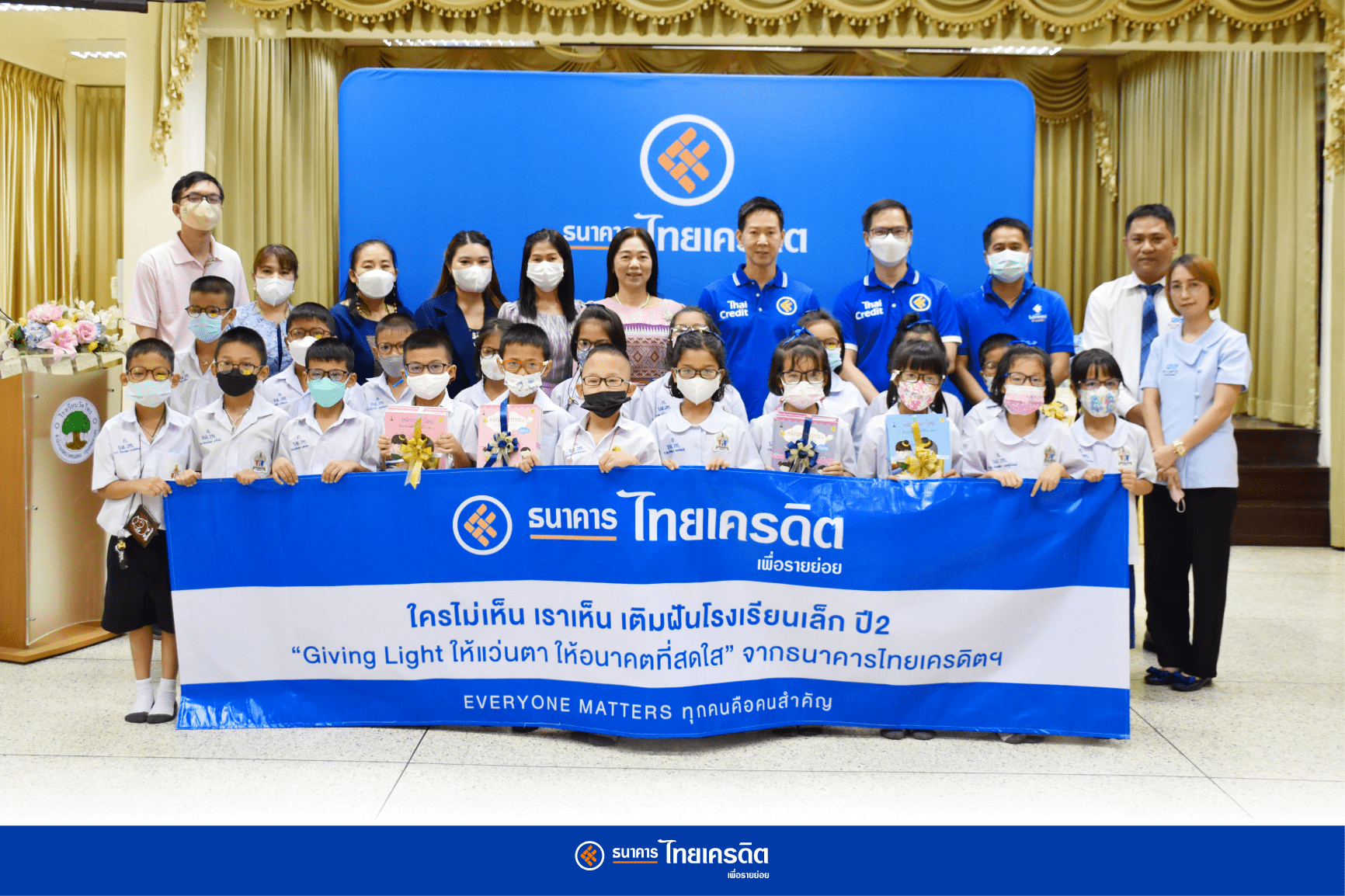 นายกมลภู ภูริดิฐสกุล ผู้ช่วยกรรมการผู้จัดการ กลุ่มบริหารธุรกิจไมโครไฟแนนซ์และสาขาสินเชื่อ ธนาคารไทยเครดิต เพื่อรายย่อย จำกัด (มหาชน) กล่าวว่า “ธนาคารไทยเครดิตฯ ตระหนักถึงความสำคัญของเยาวชนไทยที่จะเป็นกำลังหลักในการขับเคลื่อนเศรษฐกิจและสังคมต่อไปในอนาคต จึงมุ่งส่งเสริมและพัฒนาการเรียนรู้ของนักเรียนในสถานศึกษา เราเชื่อว่าสุขภาพดวงตาเป็นสิ่งสำคัญต่อการใช้ชีวิตและการเรียนของเยาวชนไทย จึงเป็นที่มาของกิจกรรมตรวจวัดสายตาและมอบแว่นตาในโครงการ ใครไม่เห็น เราเห็น…เติมฝันโรงเรียนเล็ก ปี 2 อีกทั้งยังเป็นการตอกย้ำแนวคิดของธนาคาร Everyone Matters ทุกคนคือคนสำคัญ”