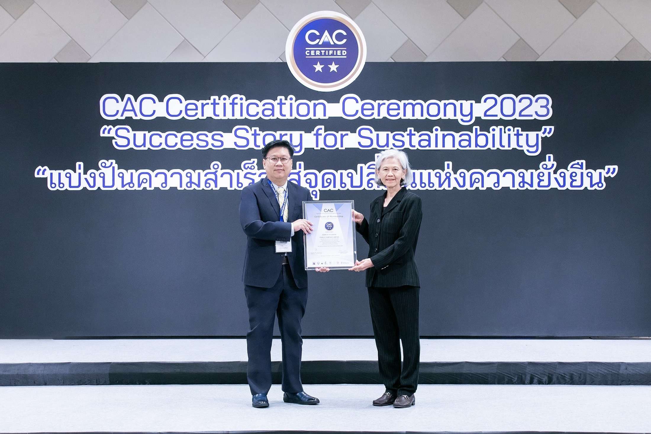 นายกิตติชัย สิงหะ ประธานคณะเจ้าหน้าที่ด้านกำกับดูแลธุรกิจ ธนาคารกรุงศรีอยุธยา จำกัด (มหาชน) เป็นตัวแทนธนาคารเข้าร่วมงาน CAC Certification Ceremony 2023: Success Story for Sustainability เพื่อรับมอบประกาศนียบัตรรับรองการเป็นสมาชิกแนวร่วมต่อต้านคอร์รัปชันของภาคเอกชนไทย (สมาชิก CAC) ซึ่งธนาคารพร้อมทั้งบริษัทในเครืออีก 13 บริษัท ได้รับรองการเป็นสมาชิก CAC อย่างต่อเนื่องเป็นครั้งที่ 4 (CAC Recertification) โดยแนวร่วมต่อต้านคอร์รัปชันของภาคเอกชนไทย (Thai Private Sector Collective Action Against Corruption (CAC)) ได้รับรองธนาคารและธนาคารพาณิชย์ไทยอื่นๆ เป็นกลุ่มแรกตั้งแต่วันที่ 8 ตุลาคม 2556
