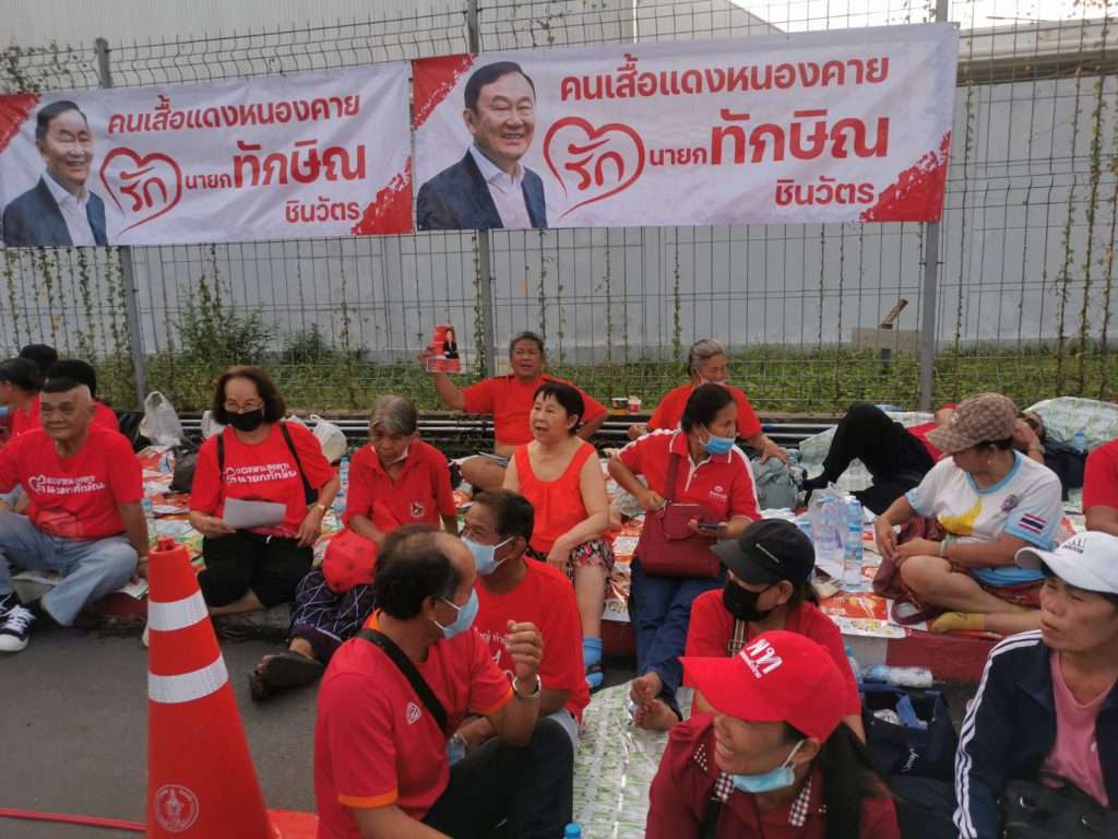 ขณะบรรยากาศที่สนามบินดอนเมือง ได้มีมวลชนเสื้อแดงจากหลายจังหวัดทั่วประเทศ เดินทางมารอคอยนายทักษิก เดินทางกลับไทยในรอบ 17 ปี โดยยืนรอคอยตั้งแต่ ปั๊ม ปตท. ริมถนน เรื่อยมาจนถึง หน้าอาคาร MJets ที่คาดว่า เป็นอาคารจอดเครื่องบินส่วนบุคคลที่คาดว่าเครื่องบินที่นำนายทักษิณ จะเดินทางมาลง ซึ่งจุดที่มวลชนรอคอยสองข้างทาง มีระยะทางยาวประมาณ 300 เมตร
