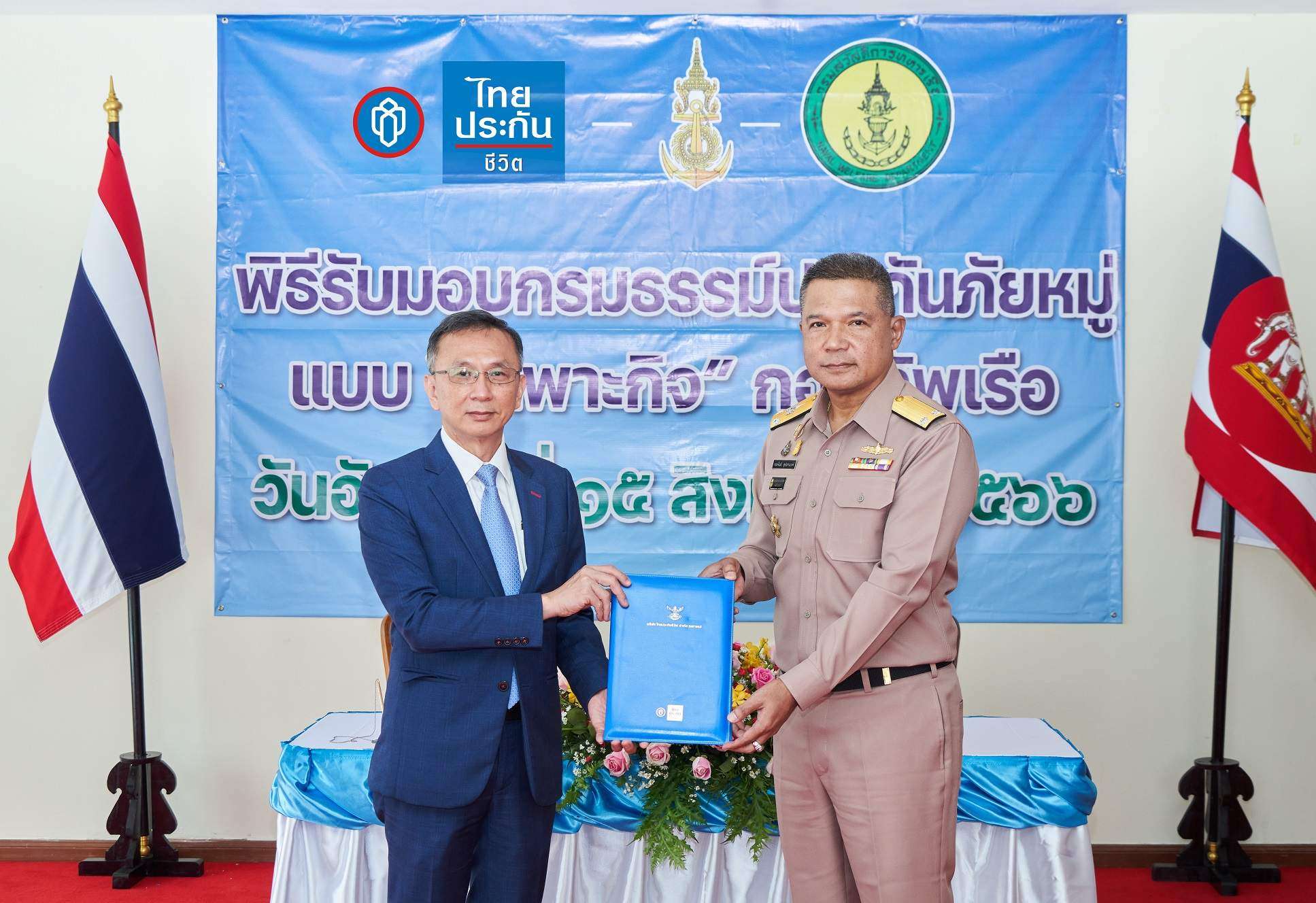 พลเรือตรี คมพันธ์ อุปลานนท์ เจ้ากรมสวัสดิการทหารเรือ รับมอบกรมธรรม์ประกันชีวิตหมู่แบบ “เฉพาะกิจ” จากนายสวัสดิ์ นฤวรวงศ์ รองผู้จัดการใหญ่ บริษัท ไทยประกันชีวิต จำกัด (มหาชน) เพื่อให้ความคุ้มครองกำลังพลของกองทัพเรือที่ปฏิบัติหน้าที่ในพื้นที่ 3 จังหวัดชายแดนภาคใต้ หรือได้รับคําสั่งให้ไปปฏิบัติหน้าที่ในพื้นที่ 14 จังหวัดภาคใต้ หรือชายแดนภาคตะวันออก (จันทบุรีและตราด) สังกัดหน่วยปฏิบัติการทุ่นระเบิดด้านมนุษยธรรมกองทัพเรือ / หน่วยปฏิบัติการทุ่นระเบิดด้านมนุษยธรรมที่ 2 หรือผู้ที่ปฏิบัติหน้าที่อยู่ในหน่วยเฉพาะกิจกองทัพเรือตามพื้นที่ชายแดน และกำลังพลที่ได้รับคำสั่งให้ไปปฏิบัติภารกิจในเขตพื้นที่ดังกล่าว ณ กรมสวัสดิการทหารเรือ