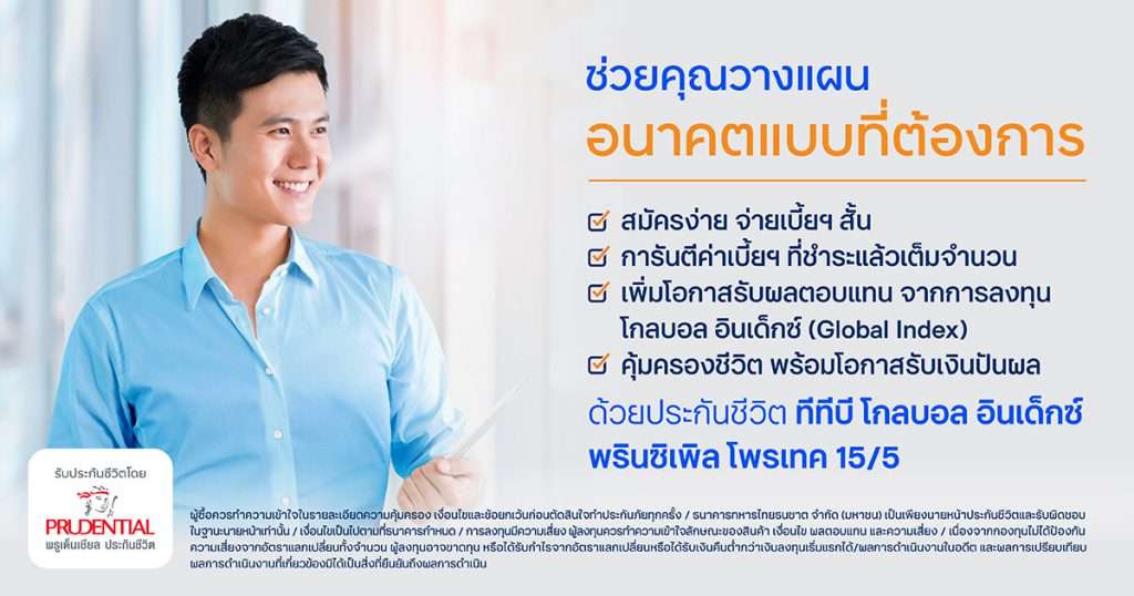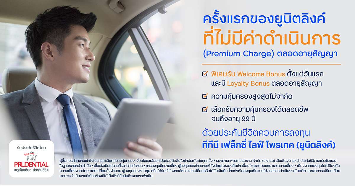 เงื่อนไขเป็นไปตามที่กรมธรรม์กำหนดความคุ้มครองขึ้นอยู่กับเพศ อายุ และแผนประกันภัยที่เลือกรับประกันชีวิตโดย บริษัท พรูเด็นเชียล ประกันชีวิต (ประเทศไทย) จำกัด (มหาชน) ธนาคารทหารไทยธนชาต จำกัด (มหาชน) เป็นเพียงนายหน้าประกันชีวิต และรับผิดชอบในฐานะนายหน้าเท่านั้น ผู้ซื้อควรทำความเข้าใจในรายละเอียดความคุ้มครอง เงื่อนไข และข้อยกเว้นก่อนตัดสินใจทำประกันภัยทุกครั้งการลงทุนมีความเสี่ยง ผู้ลงทุนควรทำความเข้าใจลักษณะของสินค้า เงื่อนไข ผลตอบแทน และความเสี่ยง/ เนื่องจากกองทุนไม่ได้ป้องกันความเสี่ยงจากอัตราแลกเปลี่ยนทั้งจำนวน ผู้ลงทุนอาจขาดทุนหรือได้รับกำไรจากอัตราแลกเปลี่ยน หรือได้รับเงินคืนต่ำกว่าเงินลงทุนเริ่มแรกได้/ ผลการดำเนินงานในอดีตและผลการเปรียบเทียบผลการดำเนินงานที่เกี่ยวข้อง มิได้เป็นสิ่งที่ยืนยันถึงผลการดำเนินงานในอนาคต