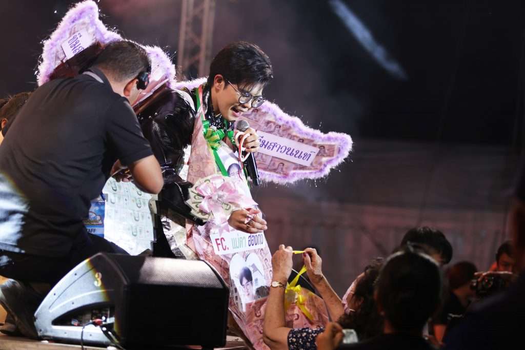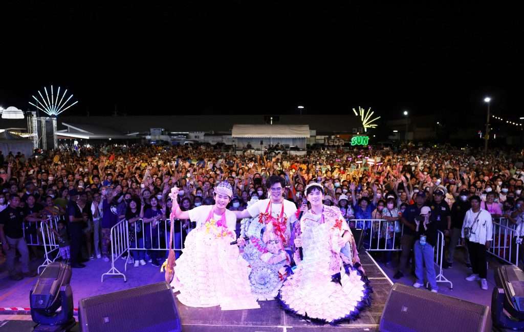 โดยได้ยกทัพศิลปินคุณภาพ นำโดย “เท่ง เถิดเทิง”, “โหน่ง ชะชะช่า”, “แจ๊ส JSPKK”, “ลำไย ไหทองคำ”, “เจนนี่-ลิลลี่ ได้หมดถ้าสดชื่น”, “เต้ย อภิวัฒน์”, “กานต์ ทศน”, “นัท ณวภัสร์”, “นัน อนันต์” พร้อมศิลปินเสริมเพิ่มความปังจากค่ายยุ้งข้าวเรคคอร์ดแบบจุก ๆ อาทิ 3 หนุ่ม RSF “ไรอัล กาจบัณฑิต – ซัน วงศธร – ฟอร์ม ชลพิพรรธน์”, ป๊อบปี้ ปรัชญาลักษณ์”, “วิทย์ สุวิทย์”, “กุ้ง จุฑาภรณ์”, “หมิว เขมจิรา”, “พลอย พลอยสวย”, “ต้นตาล ยุทธการณ์”, “ปุย ปรีญานุช” และ ศิลปินน้องใหม่ขวัญใจแม่ยกอย่างน้อง ‘’ลีโอ ไมค์หมดหนี้” สับเปลี่ยนหมุนเวียนกันขึ้นเวทีมอบความสุขในทั้ง 5 จังหวัด โดยมี “พัน พลุแตก” เป็นพิธีกรมอบความสุขตลอดทั้งงาน