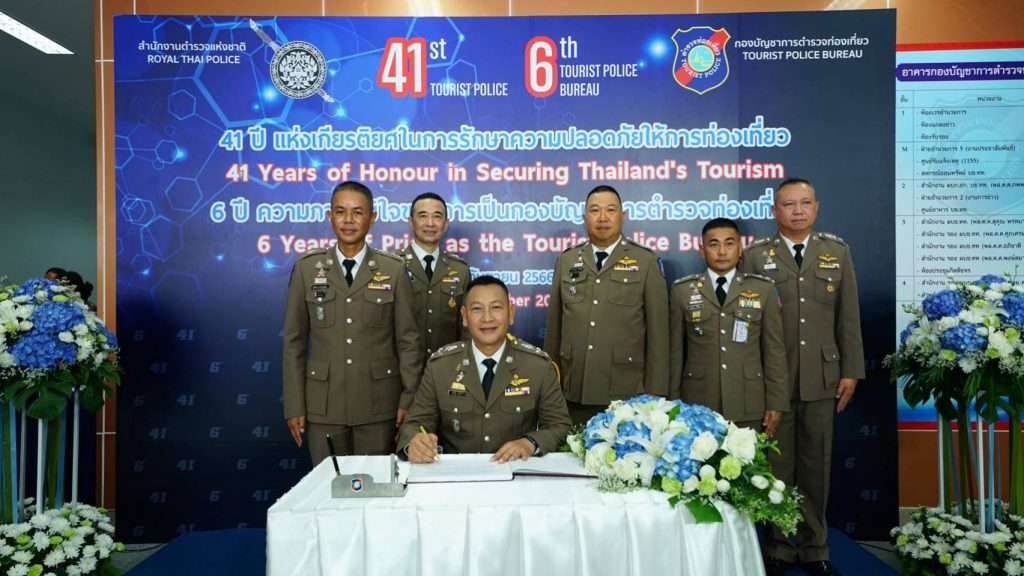 วันนี้ (1 ก.ย.66) เวลา 09.10 น. พล.ต.อ.กิตติ์รัฐ พันธุ์เพ็ชร์ รองผู้บัญชาการตำรวจแห่งชาติ เดินทางไปเป็นประธานในพิธีเนื่องในวันคล้ายวันสถาปนากองบัญชาการตำรวจท่องเที่ยว 1 กันยายน 2566 ณ กองบัญชาการตำรวจท่องเที่ยว ถ.สุวรรณภูมิ 4 อ.บางพลี จ.สมุทรปราการ โดยมี พล.ต.ท.สุคุณ พรหมายน ผู้บัญชาการตำรวจท่องเที่ยว คณะผู้บังคับบัญชากองบัญชาการตำรวจท่องเที่ยว (บช.ทท.) ผู้บังคับบัญชาระดับ ตร. อดีตผู้บังคับบัญชา แขกผู้มีเกียรติทั้งหน่วยงานราชการ เอกชน และผู้แทนสถานทูตจาก 17 ประเทศ ร่วมพิธี โดยวันนี้เป็นวันคล้ายวันสถาปนากองบัญชาการตำรวจท่องเที่ยว นับเป็นปีที่ 6 ภายหลังได้รับการยกฐานะจากกองบังคับการตำรวจท่องเที่ยว ขึ้นเป็นกองบัญชาการตำรวจท่องเที่ยว เมื่อวันที่ 1 กันยายน 2560