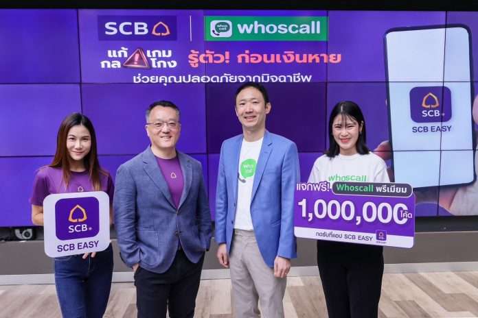 ธนาคารไทยพาณิชย์ มีความห่วงใยสังคมไทยและตระหนักถึงผลกระทบจากภัยทุจริตทางการเงินของมิจฉาชีพที่มีแนวโน้มเพิ่มขึ้นอย่างต่อเนื่องและเปลี่ยนแปลงรูปแบบอยู่ตลอดเวลา จึงได้จัดทำโครงการ แก้เกมกลโกง “รู้ตัว! ก่อนเงินหาย” ขึ้นมาเพื่อช่วยให้คนไทย ตื่นตัว รับรู้ เข้าใจ และรู้ทันวิธีป้องกันภัยทุจริตทางการเงิน และภัยคุกคามทางไซเบอร์ด้วยตนเอง ล่าสุด ผนึกกำลังกับแอปพลิเคชัน “Whoscall” ที่จะช่วยระบุหมายเลขโทรศัพท์ที่ไม่รู้จักและบล็อกสแปม พัฒนาโดย Gogolook ผู้ให้บริการเทคโนโลยีเพื่อความเชื่อมั่น (Trust-Tech) ในการสร้างเครือข่ายและระบบการต่อต้านการฉ้อโกงของโลก ครั้งแรกกับการแจกโค้ด Whoscall พรีเมียมฟรี 1 ล้านโค้ด นาน 6 เดือน มูลค่ารวมกว่า 354 ล้านบาท สำหรับลูกค้า SCB EASY เพียงกดรับโค้ด Whoscall พรีเมียม ผ่านเมนู EASY BONUS บนแอปพลิเคชัน SCB EASY ได้ง่ายๆ ตั้งแต่วันที่ 4 กันยายน 2566 – 3 มกราคม 2567 (จำกัด 1 คน/สิทธิ/ตลอดระยะเวลาแคมเปญ) โดยความร่วมมือครั้งนี้ ธนาคารหวังเป็นอย่างยิ่งว่าจะสามารถช่วยยกระดับความปลอดภัยเพื่อป้องกันความเสี่ยงจากภัยของมิจฉาชีพได้อย่างเท่าทันและมีประสิทธิภาพ พร้อมเสริมสร้างความมั่นใจในการทำธุรกรรมให้แก่ลูกค้าของธนาคารมากยิ่งขึ้น