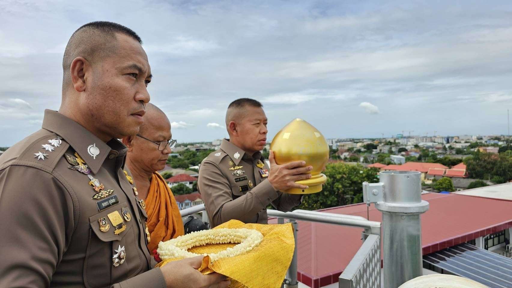 ผบช.ภ.7 เป็นประธานพิธีบรรจุพระยอดธงและสิ่งศักดิ์สิทธิ์บนหัวบัวยอดเสาธง ที่ทำการตำรวจภูธร ภ.7 ใหม่