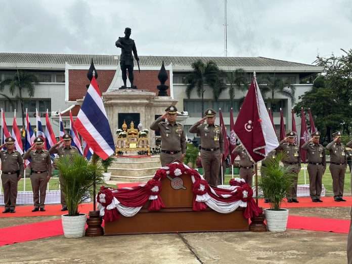 วันนี้ (6 ก.ย. 66) ณ ตำรวจภูธรภาค 6 จว.พิษณุโลก พล.ต.อ.ดำรงศักดิ์ กิตติประภัสร์ ผบ.ตร. เดินทางมาตรวจเยี่ยม อำลาหน่วย และเป็นประธานบวงสรวงปฐมฤกษ์โครงการก่อสร้างสนามยิงปืนกิตติประภัสร์ โดยมี พล.ต.ท.ประจวบ วงศ์สุข ผู้ช่วย ผบ.ตร. , พล.ต.ท.อัคราเดช พิมลศรี ผบช.ภ.6 , รอง ผบช. , ผบก.ในสังกัด ภ.6ข้าราชการตำรวจ และแขกผู้มีเกียรติเข้าร่วม ผบ.ตร.สักการะพระบรมราชานุสาวรีย์สมเด็จพระนเรศวรมหาราช และตรวจแถวกองเกียรติยศ จากนั้นเข้าห้องประชุม มอบนโยบายแก่ข้าราชการตำรวจ ภ.6
