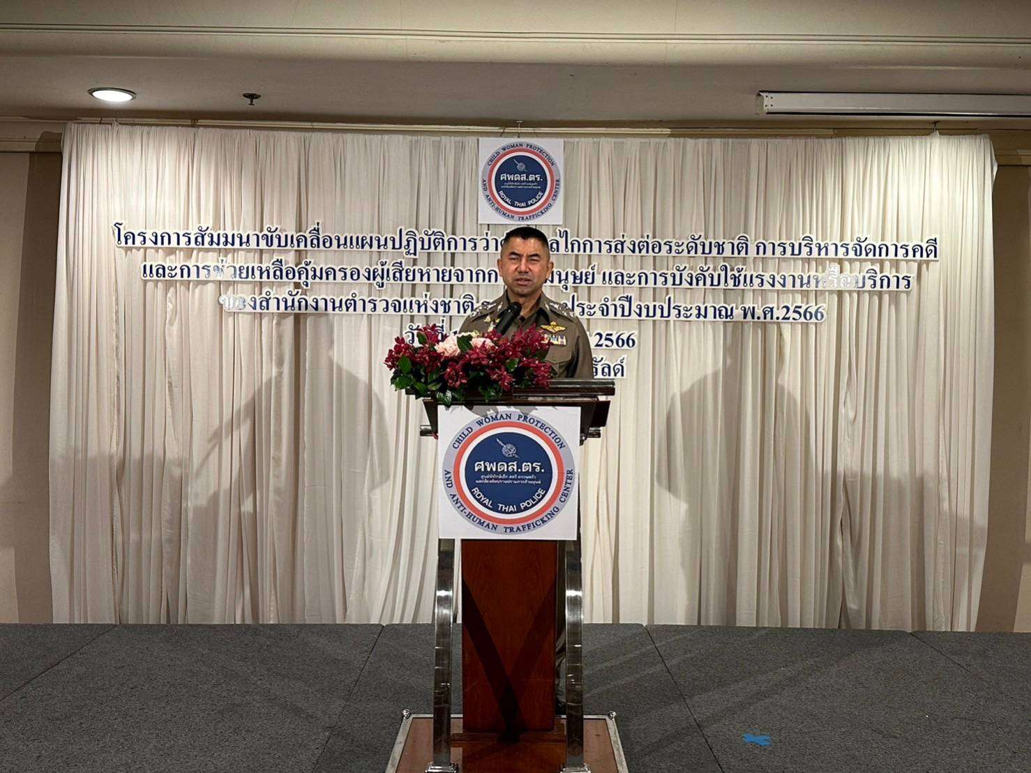 พล.ต.อ.สุรเชษฐ์ เป็นประธานพิธีเปิดโครงการสัมมนาขับเคลื่อนกลไกการส่งต่อระดับชาติ (NRM) ระยะที่ 2 เพิ่มประสิทธิภาพการช่วยเหลือคุ้มครองผู้เสียหายจากการค้ามนุษย์