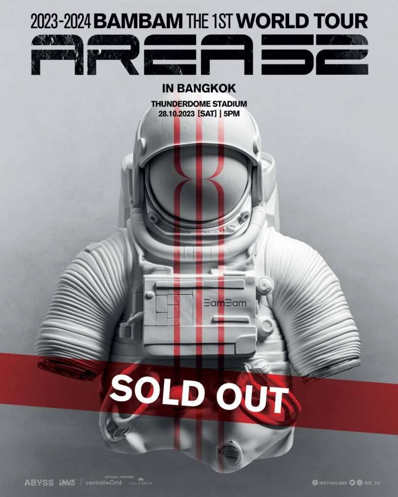 สำหรับงานคอนเสิร์ต “2023-2024 BamBam THE 1ST WORLD TOUR [AREA 52] in BANGKOK” จะจัดขึ้นในวันเสาร์ที่ 28 ตุลาคม 2566 เวลา 17.00 น. ที่ธันเดอร์โดม สเตเดียม (Thunderdome Stadium) ซึ่ง“แบมแบม” ทุ่มเทสุดตัวเพื่อให้งานครั้งนี้ออกมาดีที่สุด เพอร์เฟคที่สุด และอยากจะมอบความสนุก ความสุข เพื่อตอบแทนความรักจากอากาเซ่ทุกคนที่เดินทางมาด้วยกันจากวันแรกจนถึงตอนนี้ โดยก่อนหน้านี้แบมแบมยังได้เดินทางมาแถลงข่าวโปรโมทเวิล์ดทัวร์เดี่ยวที่ประเทศไทยและเดินสายสัมภาษณ์เปิดใจหลายรายการสร้างความประทับใจและรอยยิ้มให้อากาเซ่ไทย ไปรอให้การต้อนรับและให้กำลังใจตั้งแต่สนามบินและตามสถานีโทรทัศน์ที่แบมแบมไปโปรโมทด้วย