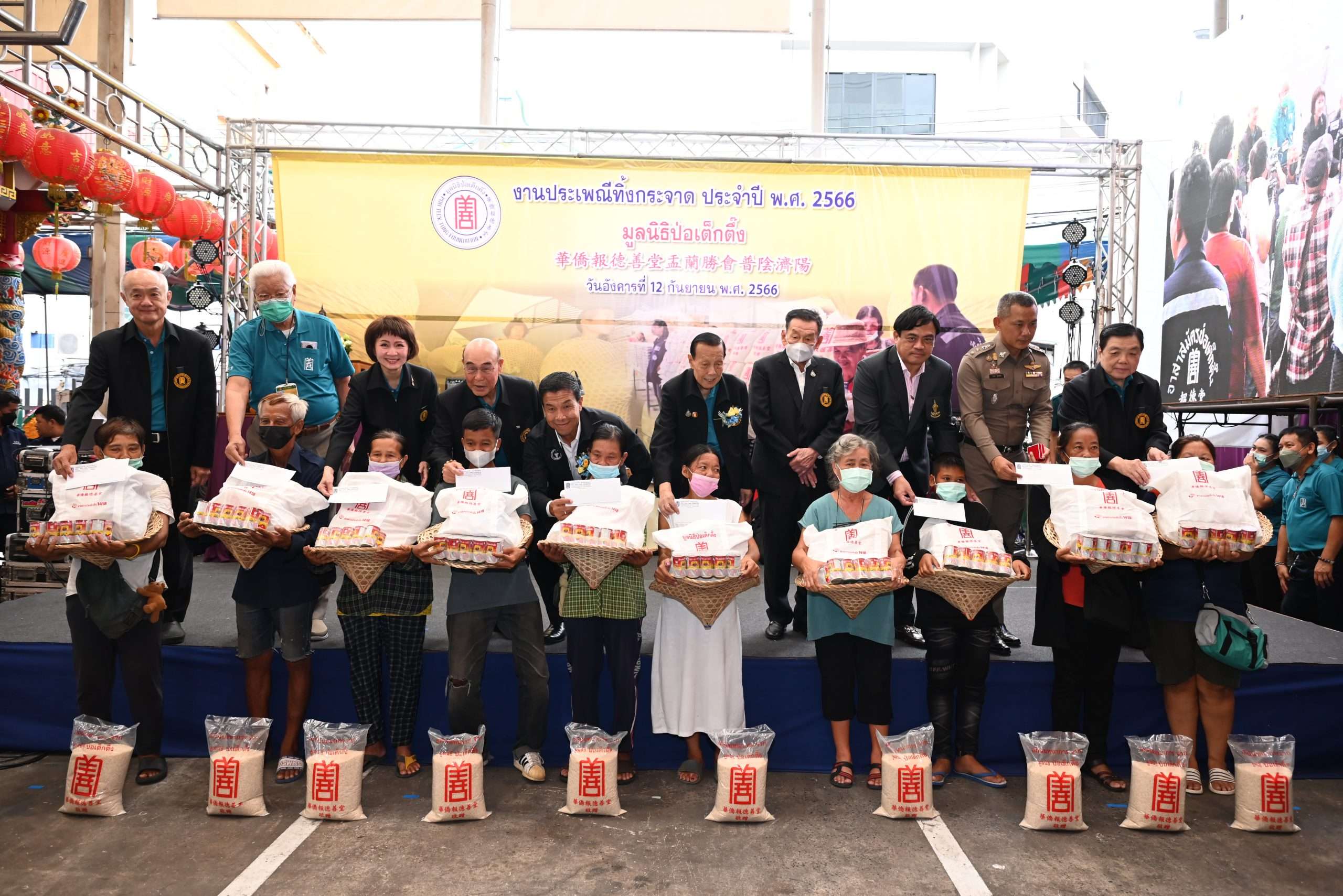 รองประธานกรรมการ พร้อมด้วยคณะกรรมการ และผู้ช่วยกรรมการมูลนิธิฯ จัดพิธีแจกเครื่องอุปโภคบริโภค เนื่องในงานประเพณีทิ้งกระจาด ประจำปี 2566 จำนวน 20,000 ชุด ให้แก่ประชาชนผู้ยากไร้ทั้งในกรุงเทพฯ และต่างจังหวัดที่เดินทางมารอรับกันอย่างเนืองแน่น โดยสิ่งของที่แจกประกอบด้วย ข้าวสาร บะหมี่กึ่งสำเร็จรูป ปลากระป๋อง น้ำปลา น้ำมันพืช ขนม ฯลฯ บรรจุถุงผ้ามูลนิธิฯ พร้อมมอบค่าพาหนะคนละ 100 บาท โดยมี นายชัชชาติ สิทธิพันธุ์ ผู้ว่าราชการกรุงเทพมหานคร เป็นประธานในพิธี พร้อมด้วย แขกผู้มีเกียรติ และ อาสาสมัครกิตติมศักดิ์ อาทิ นางศิริวรรณ โอภาสวงศ์ และนางศิริพร โอภาสวงศ์ ร่วมในพิธี ณ มูลนิธิป่อเต็กตึ๊ง พลับพลาไชย กรุงเทพฯ
