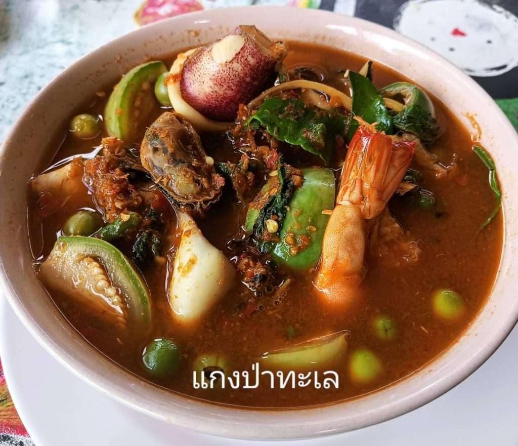 แกงป่าทะเล ร้านนี้จะใช้เครื่องแกงป่า ออกไปในแนวภาคตะวันออก ซึ่งใครเคยไป ระยอง จันทบุรี ตราด แล้วได้กินแกงป่า จะรู้เลย ว่าเอกลักษณ์ของเครื่องแกง 3 จังหวัดนี้ เป็นอาหารพื้นถิ่นที่ชาวบ้านเขาทำกินกันมาตั้งแต่โบร่ำโบราณ หอมสมุนไพรมากมาย แต่ร้านป้าแจ๋วเลือกที่จะใช้เครื่องแกงซึ่งสั่งส่งมาจากจังหวัดตราด ก็ถือว่าแปลกดี