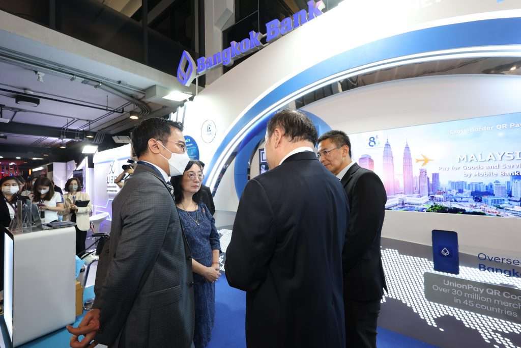 ผู้ช่วยผู้จัดการใหญ่ และนายธวัชชัย บุตรอินทร์ เจ้าหน้าที่บริหารระดับ Senior Vice President งานบริการ Corporate Cash Management พร้อมผู้บริหาร ธนาคารกรุงเทพ จำกัด (มหาชน) ร่วมให้การต้อนรับ ดร.เศรษฐพุฒิ สุทธิวาทนฤพุฒิ ผู้ว่าการธนาคารแห่งประเทศไทย (ธปท.) โอกาสให้เกียรติเยี่ยมชมบูธธนาคารกรุงเทพ ภายใต้แนวคิด “The New Chapter of Innovative Digital Transaction” โดยนำเสนอนวัตกรรมด้านการเงินที่จะช่วยสร้างสมดุลของการใช้ชีวิตในทุกรูปแบบในยุคดิจิทัล ไร้กังวลภายใต้มาตรฐานความปลอดภัยขั้นสูง พร้อมโชว์เคสด้านบริการทางการเงินดิจิทัลครบวงจร ตอกย้ำความแข็งแกร่งในฐานะ ‘สถาบันการเงินชั้นนำของภูมิภาค’ ในงาน BOT Digital Finance Conference 2023 ซึ่งจัดขึ้นระหว่างวันที่ 14-15 กันยายน 2556
