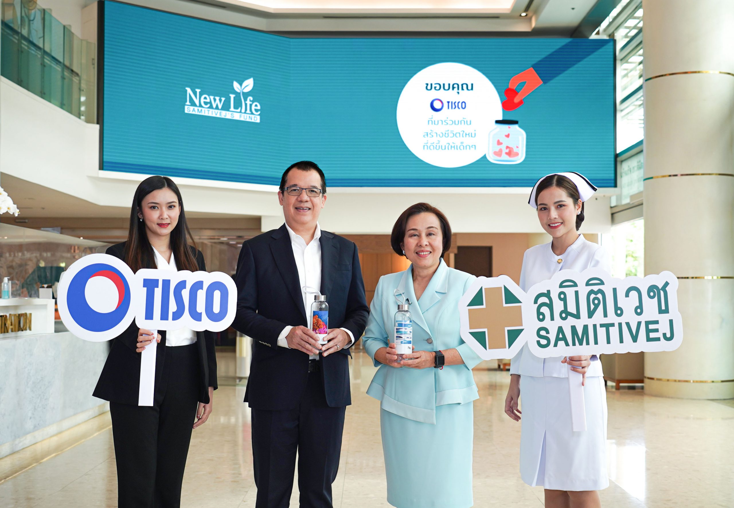 ธนาคารทิสโก้ นำโดย นายพิชา รัตนธรรม ผู้ช่วยกรรมการผู้จัดการใหญ่อาวุโส ธนาคารทิสโก้ (ที่สองจากซ้าย) ร่วมสมทบทุน “กองทุนสมิติเวช เพื่อชีวิตใหม่” เพื่อช่วยเหลือเด็กที่เป็นโรคหัวใจพิการแต่กำเนิด เด็กที่ต้องได้รับการปลูกถ่ายไขกระดูก และเด็กที่กระดูกสันหลังคด ที่ขาดโอกาสและทุนทรัพย์ในการรักษา โดยมีแพทย์หญิงสุรางคณา เตชะไพฑูรย์ รองประธานเจ้าหน้าที่บริหารกลุ่มโรงพยาบาลสมิติเวช และโรงพยาบาลบีเอ็นเอช และผู้อำนวยการโรงพยาบาลเด็กสมิติเวช (ที่สามจากซ้าย) ให้การต้อนรับ ณ โรงพยาบาลสมิติเวช ศรีนครินทร์