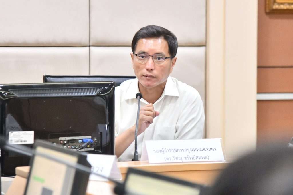 ด้าน นายวิศณุ ทรัพย์สมพล รองผู้ว่าราชการกรุงเทพมหานคร เป็นประธานการประชุมการแก้ไขปัญหาจากการก่อสร้างบนผิวจราจรในพื้นที่กรุงเทพมหานคร ณ ห้องสุทัศน์ ศาลาว่าการกรุงเทพมหานคร (เสาชิงช้า) โดยมี ผู้บริหารหน่วยงานในสังกัดกรุงเทพมหานคร ได้แก่ สำนักการโยธา สำนักการระบายน้ำ สำนักการจราจรและขนส่ง และหน่วยงานอื่น ๆ ที่เกี่ยวข้องกับการก่อสร้างบนผิวจราจร ได้แก่ การไฟฟ้านครหลวง การรถไฟฟ้าขนส่งมวลชนแห่งประเทศไทย การประปานครหลวง บริษัท โทรคมนาคมแห่งชาติ จำกัด (มหาชน) และการทางพิเศษแห่งประเทศไทย ร่วมประชุม