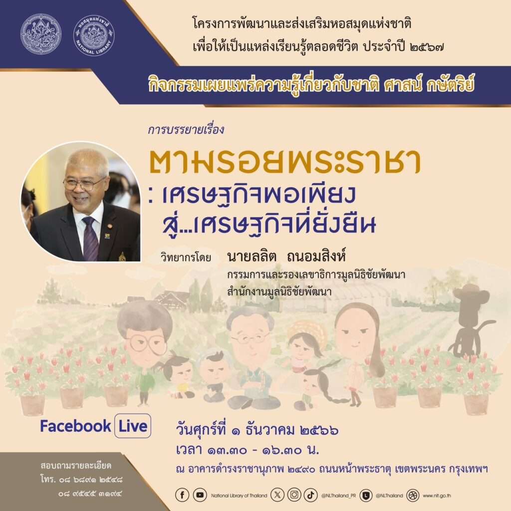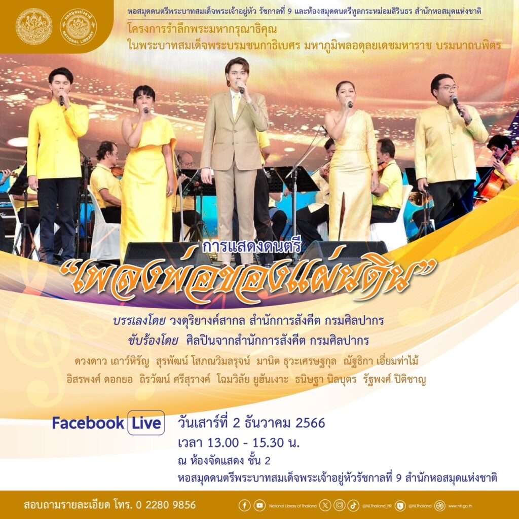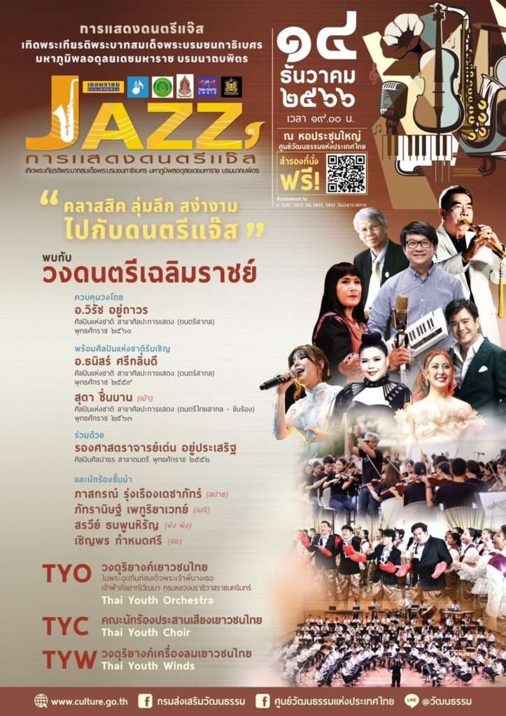 วธ.รวมใจน้อมรำลึก ในหลวง ร.9 วันชาติและวันพ่อแห่งชาติ จัดพิธีเจริญพระพุทธมนต์ จิตอาสาบำเพ็ญสาธารณประโยชน์ ชวนดื่มด่ำบทเพลงพระราชนิพนธ์ พระอัจฉริยภาพด้านดนตรีแจ๊ส เสวนาตามรอยพระราชา พร้อมใจทำความดีถวายพระราชกุศล เนื่องในวันคล้ายวันพระบรมราชสมภพพระบาทสมเด็จพระบรมชนกาธิเบศร มหาภูมิพลอดุลยเดชมหาราช บรมนาถบพิตร (ในหลวง ร.9) วันชาติ และวันพ่อแห่งชาติ 5 ธันวาคม 2566 ทั่วประเทศ