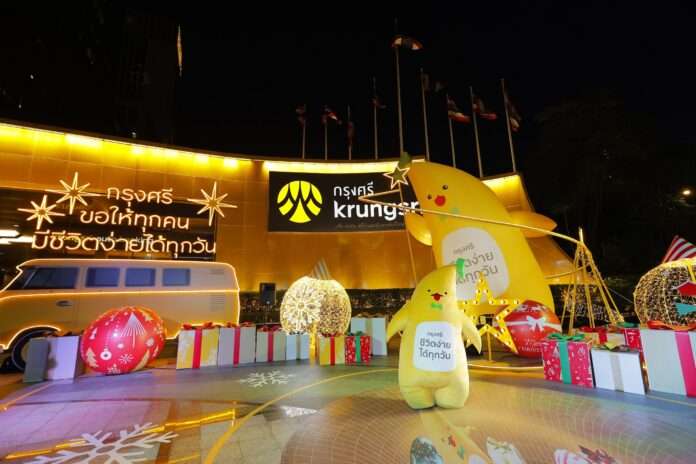 กรุงศรี (ธนาคารกรุงศรีอยุธยา จำกัด (มหาชน) และบริษัทในเครือ) ร่วมฉลองคริสต์มาสและเทศกาลปีใหม่ เนรมิตพื้นที่ด้านหน้าอาคารสำนักงานใหญ่ พระรามที่ 3 และสำนักงานเพลินจิต ให้เป็นพื้นที่แห่งความสุข ตกแต่งและประดับไฟด้วยสีสันสดใส เป็นอีกหนึ่งจุดเช็คอินให้ลูกค้าและบุคคลทั่วไปได้สามารถเข้ามาถ่ายภาพเก็บเกี่ยวความสุขในช่วงส่งท้ายปลายปี ในปีนี้กรุงศรีออกแบบพื้นที่โดยมี “น้องกล้วยกรุงศรี” เซเลบแห่งโลกโซเชียลและตัวแทนของความสุขที่สะท้อนคำมั่นสัญญาของแบรนด์กรุงศรีที่จะทำให้ลูกค้ามี “ชีวิตง่าย ได้ทุกวัน” ให้ลูกค้าและประชาชนทั่วไปที่ผ่านไปมา