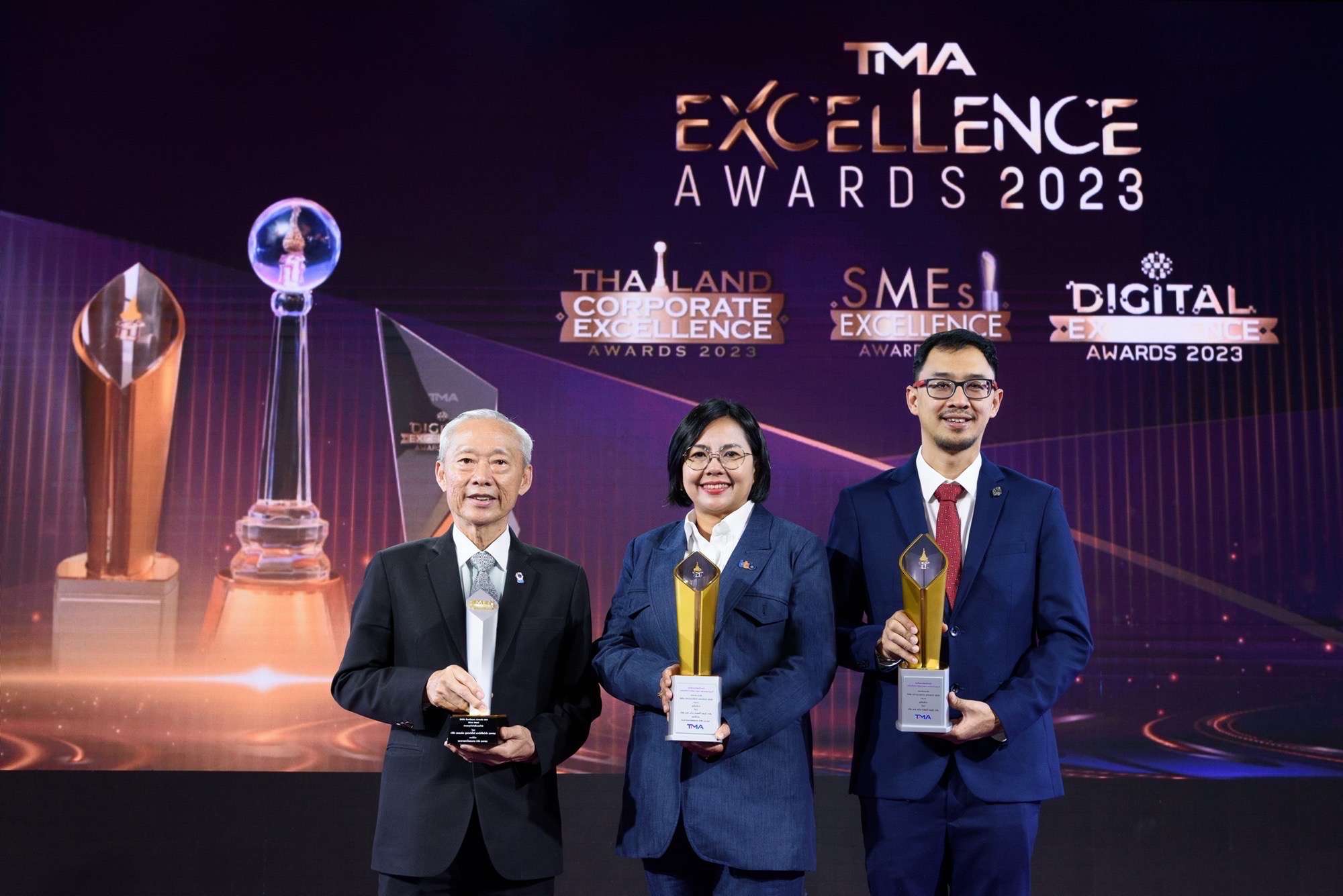 ทีเอ็มบีธนชาต หรือ ทีทีบี นำโดย นางพาจนา รุจิเรข (กลาง) รองประธานเจ้าหน้าที่บริหาร หัวหน้าบริหารความสัมพันธ์ลูกค้าบรรษัทธุรกิจ พร้อมด้วย นายปรเมศ อิงสุวรรณ (ขวา) ประธานกรรมการบริหาร บริษัท เค.พี. อะโกร อินดัสทรี้ (ลพบุรี) จำกัด และ นายกวิศพงษ์ สิริธนนนท์สกุล (ซ้าย) กรรมการผู้จัดการ บริษัท เคแอนด์เค ซุปเปอร์สโตร์ เซาท์เทิร์น จำกัด (มหาชน) ร่วมรับ 2 รางวัล จากเวที “SMEs Excellence Awards 2023” ซึ่งจัดโดย สมาคมการจัดการธุรกิจแห่งประเทศไทย (TMA) นับเป็นรางวัลอันทรงเกียรติที่ยกย่องความเป็นเลิศของผู้ประกอบการเอสเอ็มอีในการบริหารจัดการองค์กร และสร้างความภาคภูมิใจให้แก่ ธุรกิจไทยที่ได้พัฒนาการบริหารจัดการให้สามารถแข่งขันในตลาดโลกได้อย่างยั่งยืน งานจัดขึ้น ณ ห้องคริสตัล ฮอลล์ โรงแรม ดิ แอทธินี โฮเทล แบงค็อก อะลักซ์ชูรี คอลเล็คชั่น กรุงเทพฯ เมื่อเร็ว ๆ นี้