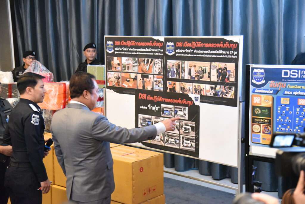 DSI แถลงผลจับกุมยึดทรัพย์ “เครือข่ายโกฟุก” มาเฟียอันดามัน เจ้าพ่อเว็บหวยใต้ดิน เงินหมุนเวียนหลายพันล้าน พบเงินสดซ่อนตู้เซฟบ้านพัก จ.ระนอง 55 ล้าน พร้อมไล่สืบทรัพย์ที่เหลือ หาก “โกฟุก” ไม่เข้ามอบตัว