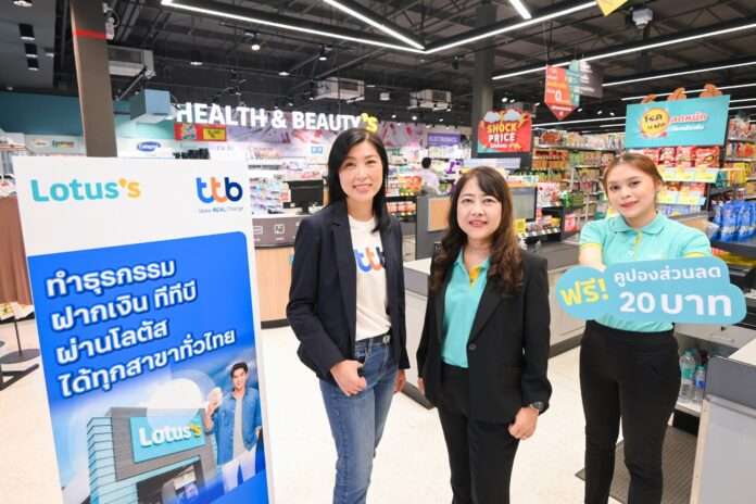 นางสาววิณัฎฐา นิภาวงษ์ ผู้ช่วยผู้อำนวยการ ฝ่ายธุรกิจบริการ โลตัส กล่าวว่า โลตัส เดินหน้าเติมเต็มประสบการณ์ช้อปปิ้งแบบสมาร์ทให้ลูกค้า และมุ่งมั่นเป็นค้าปลีกที่เป็น SMART Life Solutions ตอบโจทย์ไลฟ์สไตล์การใช้ชีวิตรอบด้าน เพื่อช่วยอำนวยความสะดวก พร้อมรองรับความต้องการทุกไลฟ์สไตล์ของลูกค้า ปัจจุบันโลตัส มีสาขาทั่วประเทศกว่า 2,300 แห่ง ที่จะช่วยให้เข้าถึงช่องทางการทำธุรกรรมทางการเงินได้อย่างสะดวกทุกที่และทุกเวลา ด้วยความพร้อมของจำนวนสาขาที่ครอบคลุมทุกภูมิภาคทั่วประเทศ และช่วงเวลาการเปิดให้บริการของโลตัส จะช่วยอำนวยความสะดวกให้ลูกค้าของทีทีบี สามารถฝากเงินสด ผ่านเคาน์เตอร์ชำระเงินของโลตัสได้อย่างสะดวก และมีช่วงเวลาในการทำธุรกรรม
