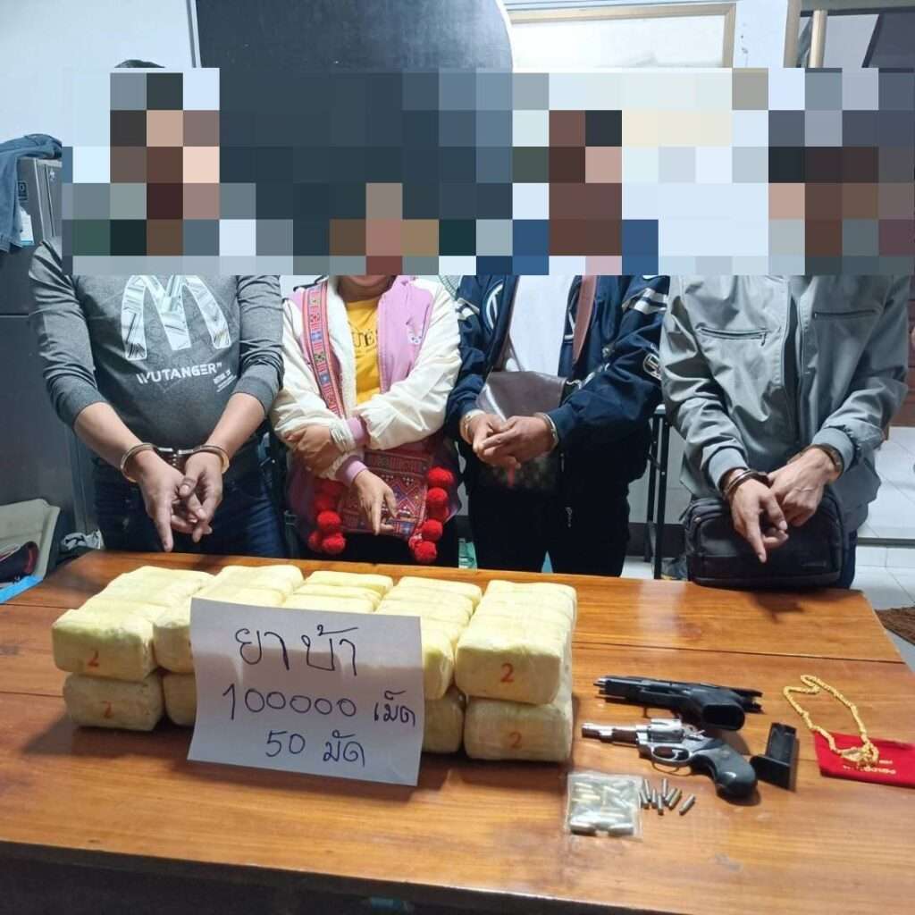 คดีที่ 4 จากการสืบสวนของ ตำรวจ กก.2 บก.ปส.3 พบมีเครือข่ายผู้ค้าและลำเลียงยาเสพติด เป็นกลุ่มชาติพันธุ์อาข่า จากชายแดนติดกับประเทศเพื่อนบ้าน ด้าน อ.แม่ฟ้าหลวง จว.เชียงราย จะลำเลียงยาเสพติดจำนวนมาก จากพื้นที่ชายแดนเข้ามายังพื้นที่ตอนในของ จว.เชียงราย โดยจะนำมาพักไว้ในพื้นที่ ต.แม่ยาว กระทั่งบ่ายวันที่ 3 ก.พ.67 ตำรวจพบรถยนต์เป้าหมายขับจากสี่แยกห้วยปลากั้ง มุ่งหน้าหมู่บ้านกะเหรี่ยงรวมมิตร ต.แม่ยาว อ.เมืองเชียงราย จว.เชียงราย และขับออกจากพื้นที่โดยใช้ถนนเส้นทาง ดอยฮาง – แยกฮ่องอ้อ และอยู่บนถนนบายพาสรอบเมืองเชียงราย ก่อนจะขับไปจอดที่ไหล่ทางถนนของถนนหน้าสนามบินแม่ฟ้าหลวงเชียงราย โดยพบรถอีกหนึ่งคันจอดอยู่ด้านหน้าและรถทั้งสองคันขับออกจากบริเวณดังกล่าว ตามกันไปในลักษณะนำทางตลอดเส้นทาง ชุดจับกุมจึงแบ่งกำลังติดตาม กระทั่งรถทั้งสองคันเลี้ยวซ้ายที่แยกต่างระดับขัวไชยนารายณ์ ขับไปตามถนน เชียงราย-เทิง ชุดจับกุมจึงประสานเจ้าหน้าที่หน่วยบริการประชาชน ห้วยสัก ของ สภ.เมืองเชียงราย ให้ช่วยหยุดรถเป้าหมายขณะทำการตั้งตรวจตรวจบริการประชาชน พบ นายบัญชา แช่เท้า ขับรถกระบะ หมายเลขทะเบียน ผธ ๕๗xx เชียงราย ขณะเดียวกันเจ้าหน้าที่อีกชุดได้ติดตามรถอีกคันคือรถกระบะ หมายเลขทะเบียน บล 42xx ลำปาง สกัดจับไว้ได้ขณะจอดบริเวณไหล่ทางก่อนถึงตัวตลาดสดห้วยสัก พบ นายธวัชชัย สวาทชาติ เป็นคนขับ ตรวจค้นในห้องโดยสารรถ พบยาบ้าซุกซ่อนอยู่ภายในห้องโดยสารด้านหลังรวม 1,000,000 เม็ด