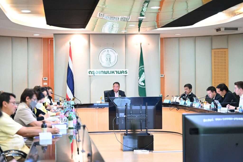ในการนี้มี นายต่อศักดิ์ โชติมงคล ประธานที่ปรึกษาของผู้ว่าราชการกรุงเทพมหานคร นายศานนท์ หวังสร้างบุญ รองผู้ว่าราชการกรุงเทพมหานคร นางวันทนีย์ วัฒนะ ปลัดกรุงเทพมหานคร ผศ.เกษรา ธัญลักษณ์ภาคย์ ที่ปรึกษาของผู้ว่าราชการกรุงเทพมหานคร นายภิมุข สิมะโรจน์ เลขานุการผู้ว่าราชการกรุงเทพมหานคร นายเอกวรัญญู อัมระปาล ผู้ช่วยเลขานุการผู้ว่าราชการกรุงเทพมหานคร และโฆษกของกรุงเทพมหานคร นายแสนยากร อุ่นมีศรี ผู้อำนวยการสำนักพัฒนาสังคม พร้อมด้วยคณะผู้บริหารสำนักพัฒนาสังคม ผู้อำนวยการเขต 50 เขต ร่วมประชุม ณ ห้องนพรัตน์ ชั้น 5 ศาลาว่าการกรุงเทพมหานคร และผ่านระบบออนไลน์