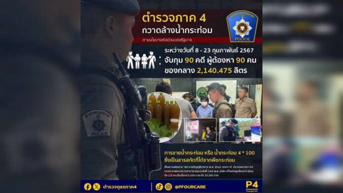 ผบช.ภ.4 สั่งระดมกำลังกวาดล้างน้ำกระท่อมในทุกพื้นที่