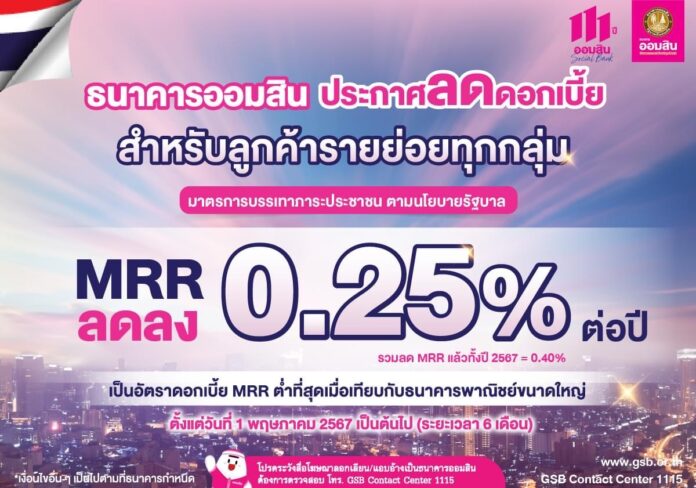 - เป็นการลดดอกเบี้ย MRR ครั้งที่ 2 ของปี 67 รวมดอกเบี้ย MRR ลดลงแล้ว 0.40%