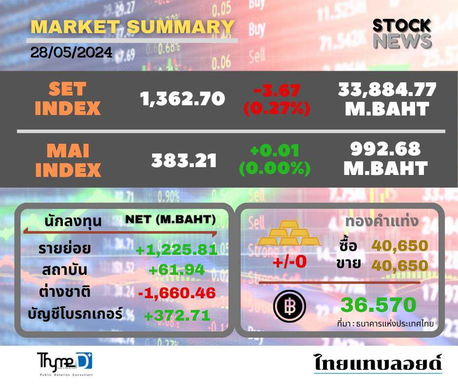 สรุปภาวะการลงทุนในตลาดหลักทรัพย์ ประจำวันที่ 28 พฤษภาคม 2567
