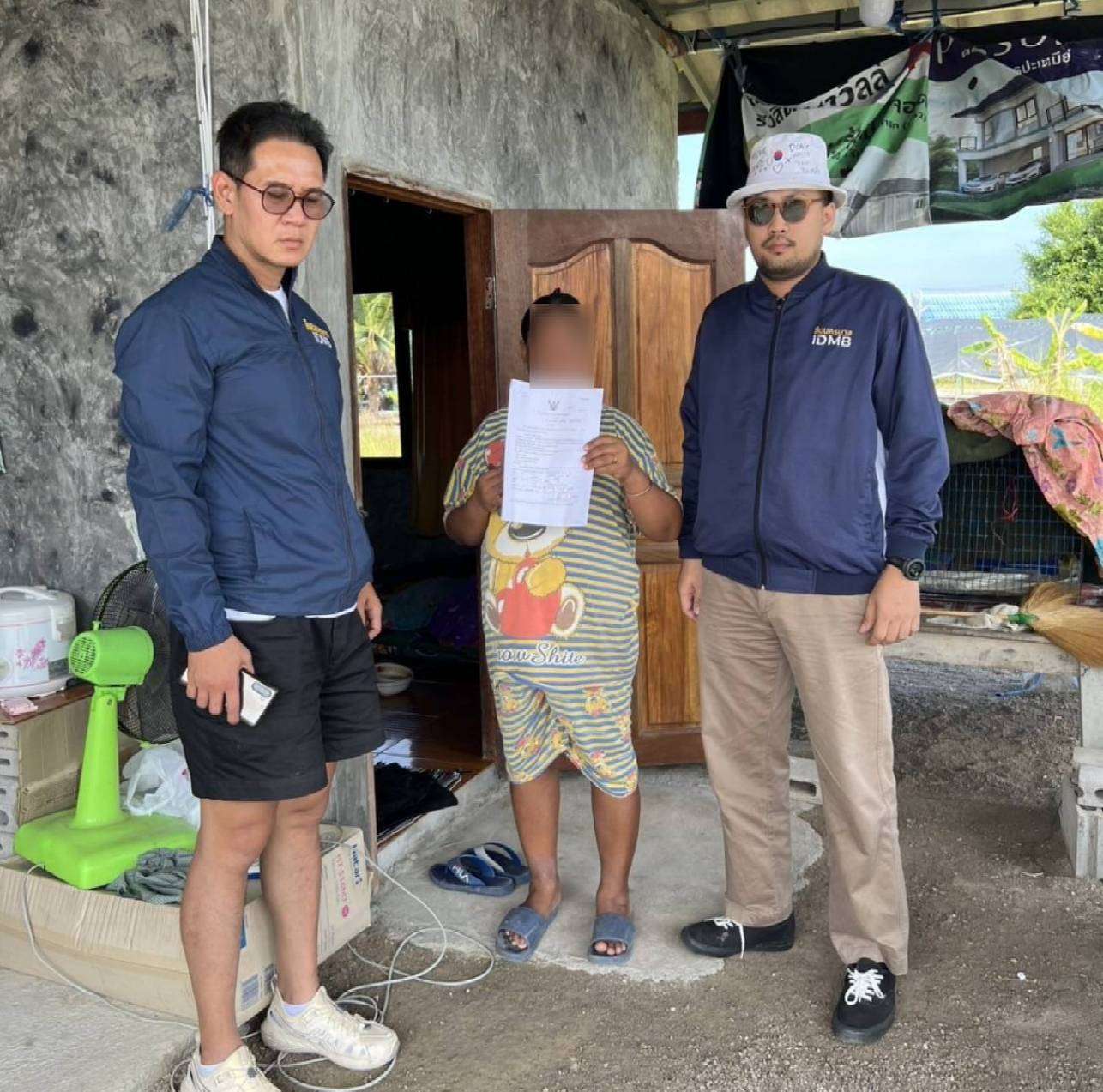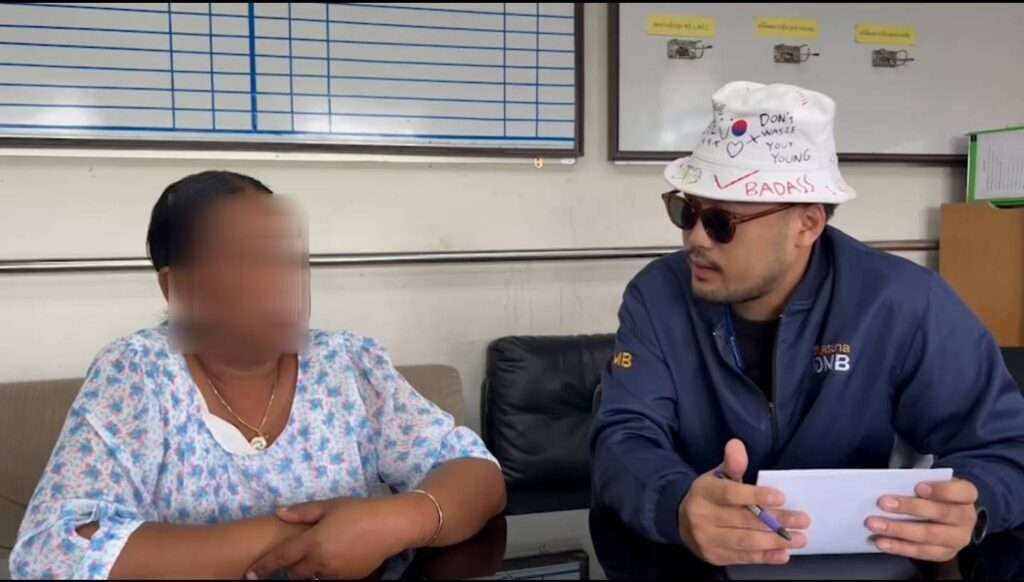 ในชั้นจับกุมผู้ต้องหาให้การว่า ก่อนหน้านี้ตนได้รู้จักกับชายชาวต่างชาติทางไลน์จากการเล่นพนันออนไลน์ และได้พูดคุยกันเรื่อยมาเสมือนคนรัก ต่อมาตนอยากสร้างบ้านจึงจะขอยืมเงินจากชายดังกล่าว โดยชายดังกล่าวออกอุบายให้ตนกรอกข้อมูลส่วนตัว ส่งรูปบัตรประชาชนทั้งหน้าและหลัง และถ่ายบัตรประชาชนคู่กับตน ส่งให้ไป โอนเงินไปให้อีก 4,000 บาท จากนั้นได้ให้วิดิโอคอล ทำท่าโบกมือและให้ตนพยักหน้า ซึ่งตนไม่รู้ภาษาต่างประเทศตนเลยพยักหน้าตามที่ชายชาวต่างชาติคนนั้นทำท่าโบกมือทักทาย