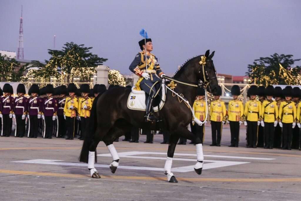 ในการนี้พลเอกหญิงสมเด็จพระนางเจ้าสุทิดา พัชรสุธาพิมลลักษณพระบรมราชินี ทรงนำการสวนสนามของทหารมหาดเล็กราชวัลลภรักษาพระองค์และทหารรักษาพระองค์สามเหล่าทัพในตำแหน่ง “ องค์ผู้บังคับการกองผสม ” พร้อมด้วยพลเอกหญิง สมเด็จพระเจ้าลูกเธอ เจ้าฟ้าสิริวัณณวรี นารีรัตนราชกัญญา ร่วมสวนสนาม ทรงม้านำขบวนกองพันทหารม้ารักษาพระองค์ ในตำแหน่ง “ องค์ผู้บังคับกองพันทหารม้ารักษาพระองค์ “
